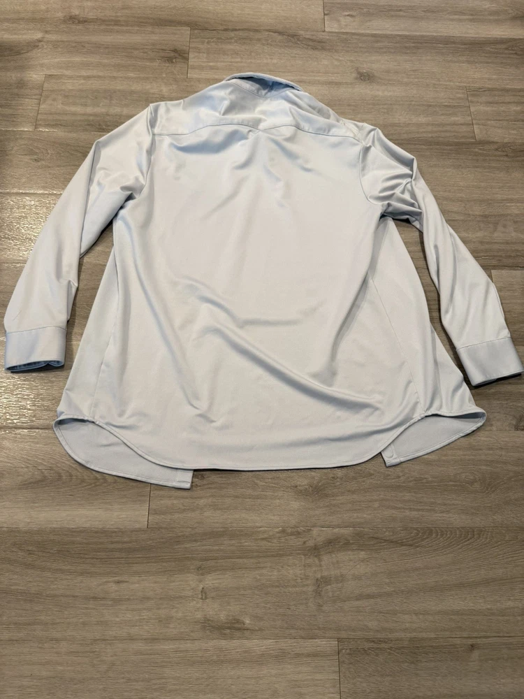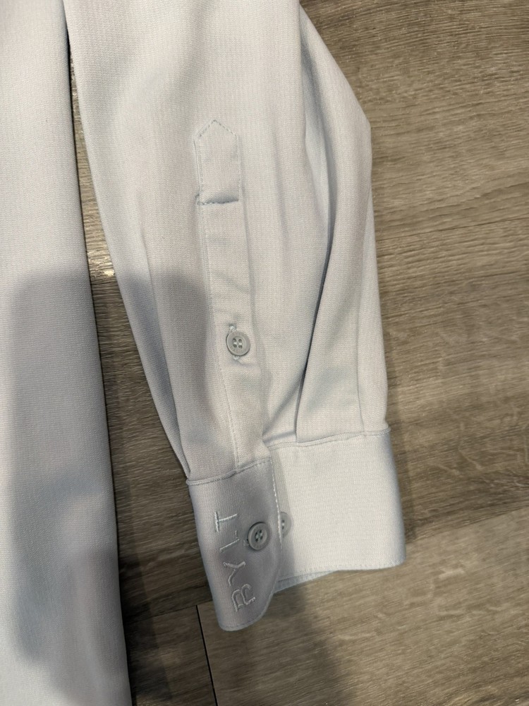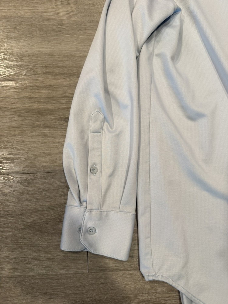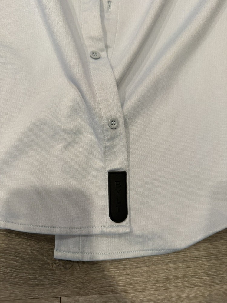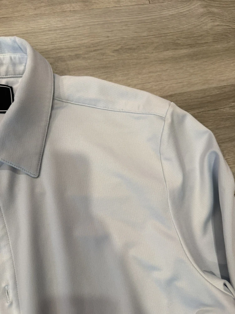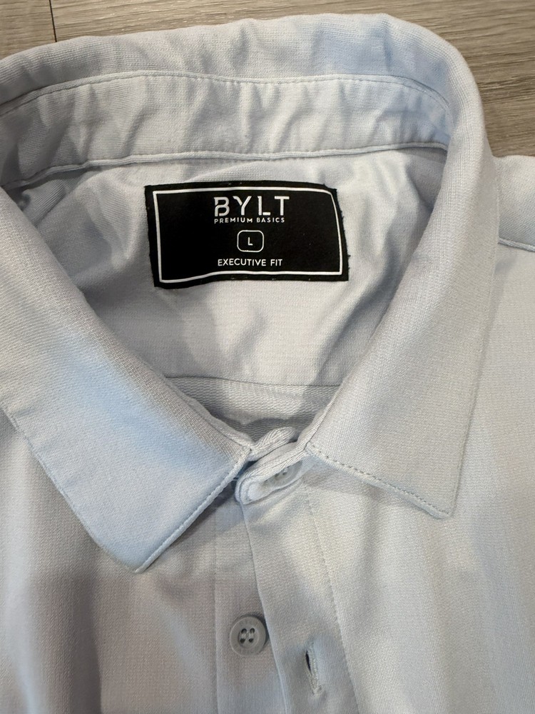 BYLT Basics Premium Executive Stretch Long Sleeve Button Down Shirt in a clean light blue colorway. Designed for modern professionals, this shirt delivers a polished, tailored look with performance stretch fabric that keeps you comfortable all day. The Executive Stretch fabric offers lightweight breathability, moisture-wicking properties, and a smooth, wrinkle-resistant finish. Ideal for office wear, business casual, formal settings, or date nights. Designed to look sharp whether worn tucked or untucked. Features: • Premium Executive Stretch fabric • 4-way stretch for comfort and mobility • Moisture & sweat-wicking • Stay-cool breathable technology • Wrinkle-resistant / easy care • Executive Fit (tailored, modern silhouette) • Can be worn tucked or untucked • Button-down long sleeve design ⸻ Condition: Pre-owned in very good condition. No holes, rips, or stains observed. Light natural wear consistent with normal use. Please review all photos for exact condition and color tone. ⸻ Item Specifics: • Brand: BYLT Basics • Style: Executive Stretch Long Sleeve Button Down • Size: Men’s Large • Fit: Executive Fit / True to Size • Color: Light Blue • Sleeve Length: Long Sleeve • Fabric Type: Stretch Performance Fabric • Material: 91% Polyester, 9% Spandex • Occasion: Work, Business, Formal, Office, Date Night • Pattern: Solid • Closure: Button • Care: Machine Wash Cold, Tumble Dry Low ⸻ BYLT Basics shirt, executive fit shirt, mens light blue button down, stretch dress shirt men, wrinkle free dress shirt, business casual mens shirt, office wear men, formal shirt men, premium basics shirt, modern fit button down