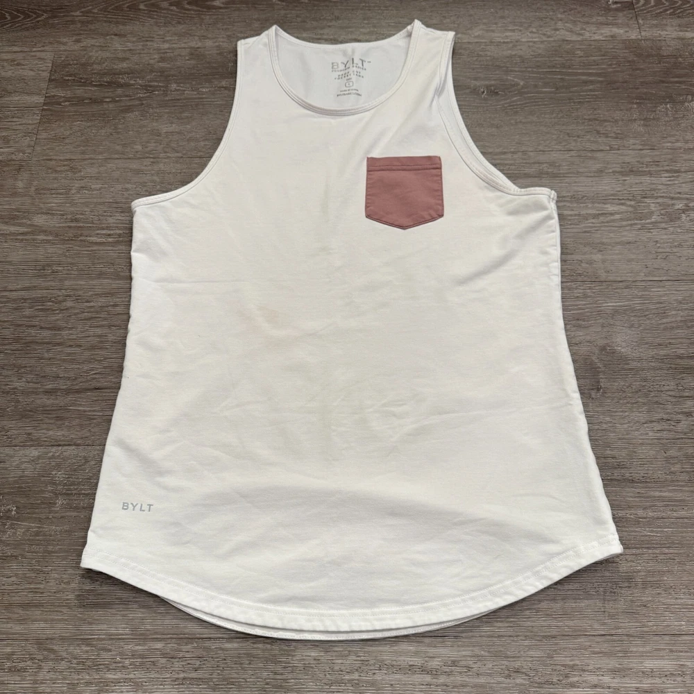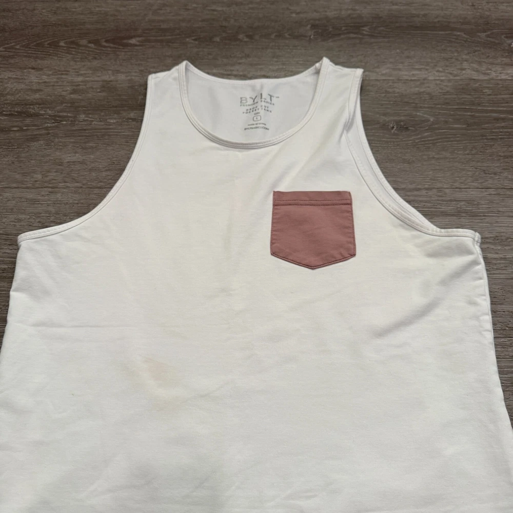BYLT Shirt Mens Large White Lux Drop Cut Tank Top Pocket Gym Workout Active
