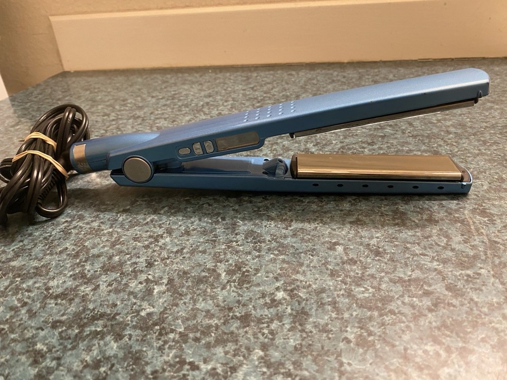 The BaBylissPRO Nano Titanium Hair Iron 450°F is a high-quality flat iron straightener designed for women. With a maximum temperature of 450 °F and a 1" barrel size, this electric hair styling tool is perfect for achieving sleek and straight hair. The ceramic material and titanium heating plate ensure even heat distribution, while the adjustable heat settings allow for customizable styling. This blue-colored iron is from the trusted brand BaByliss PRO, making it a reliable choice for creating salon-quality results at home.