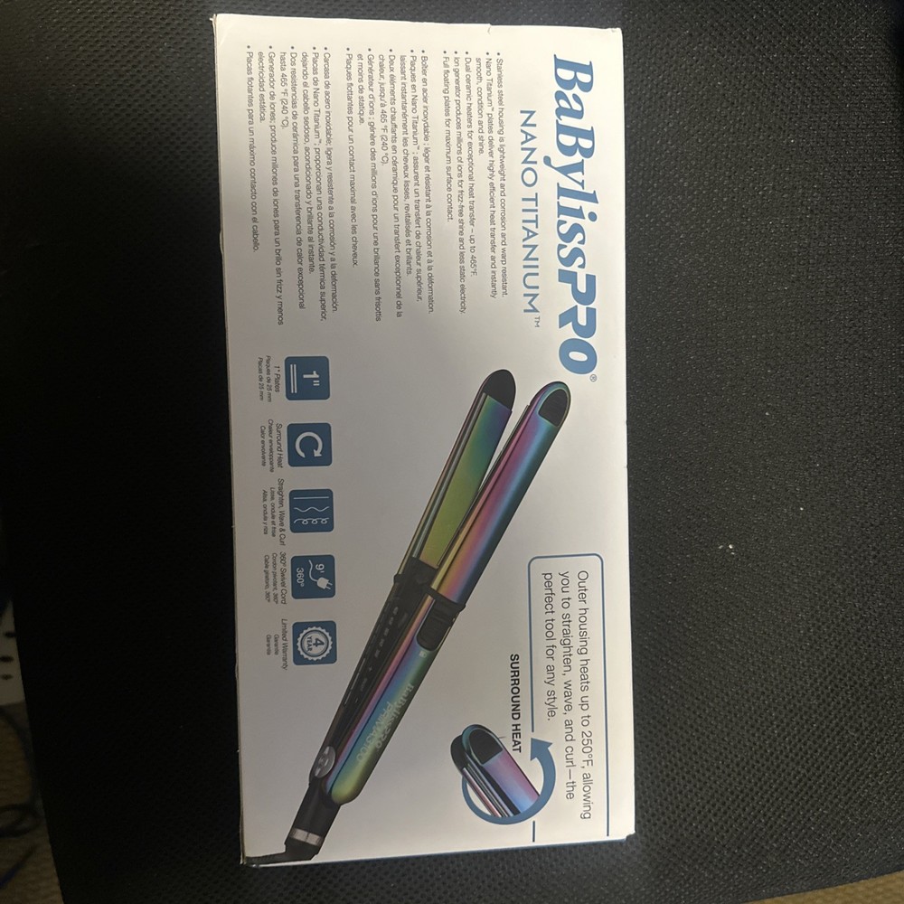 The BaBylissPRO Nano Titanium Prima3100 1¼" Flat Iron Iridescent is a high-quality hair styling device suitable for both men and women. With its electric power source and adjustable heat settings, this flat iron allows for customizable styling options. The titanium heating plate provides maximum temperature of 465 °F, ensuring efficient and smooth styling. The sleek design and iridescent finish add a touch of elegance to your hair care routine.