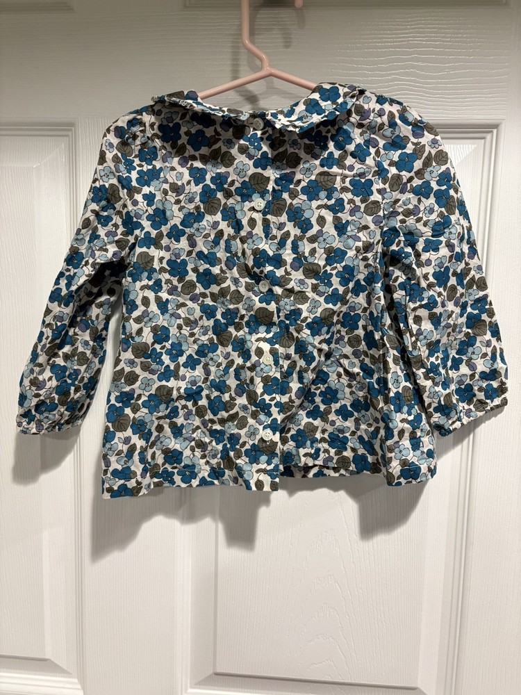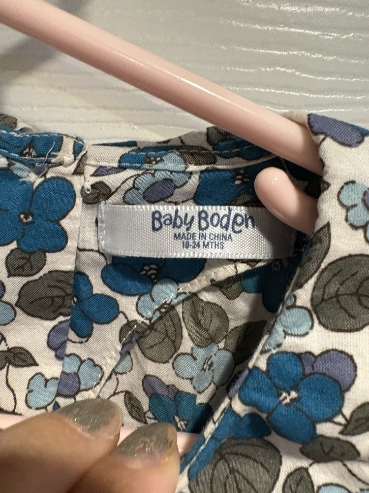 The Baby Boden 18-24 Months Blouse is a stylish and adorable option for baby girls. Featuring a beautiful blue and green floral pattern, this long sleeve blouse is perfect for adding a pop of color to any little girl's wardrobe. The round neckline and size 18-24 months make it comfortable and easy to wear for active little ones. Ideal for dressing up or down, this blouse is sure to be a favorite in any baby girl's closet.