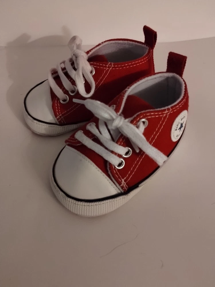 These adorable red canvas shoes are perfect for your little beginner walker. With a comfortable fit and stylish design, they are suitable for both baby girls and boys. The shoes are made from high-quality materials, ensuring durability and longevity. The shoes come in a vibrant red color that will complement any outfit, making them a great addition to your baby's wardrobe. They are perfect for both indoor and outdoor activities, providing excellent support and comfort to your little one. Get these baby canvas shoes today and watch your little one take their first steps in style!