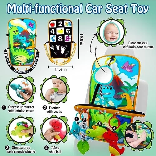 Return Policy Fast Delivery Trusted seller Baby Car Seat Dinosaurs Toys - Kick and Play Double Sided Infant Car Seat Toys with Plush Toys, Mirror, Teether for Baby, Baby Travel Activities, Christmas Birthday Gifts Newborn Infant Toys Product Description ?ENTERTAINMENT FOR LONG JOURNEY - Amazing adjustable baby car seat toys and interesting small Dinosaurs to attract the baby, improve the baby's activity and ability through the baby's play. Make the boring driving time more fun and easy. ?SONSORY TOY YOU NEED ON ROAD - This toy can be adjusted in many places so that your baby can easily pinch, touch, and kick the interesting sound accompanied by this toy, which is suitable for babies at different ages. ?FINE MOTOR SKILS - Comes with soft Teether, Beads with ring, red dinosaur with bell, green dinosaur with squeaker sound, blue dinosaur with wings. They are lovely hanging Dinosaur toys which will make interesting sounds to keep the baby busy. ?EASY INSTALLATION - We made it very easy for installing the seat in car. Fix the toy under the head restraint of the rear seat of the car through two plastic buckles and two adjusting rods. The length and angle are adjustable to facilitate the baby's play. ?PERFECT GIFT TO ENJOY LONG TRIPS - This item is packaged in amazing portable box which is a perfect gift for baby. It is the best baby gift for mom or dad. It will provide safe, fun, and stress-free car travel for families with babies for a long time. Shipping Returns Payment Shipping Shipping is FREE to all addresses other than APO/PO boxes in the lower 48 states. All our stock ships from US-based warehouses. Shipped via USPS or UPS (depending on location and package weight) Unless stated otherwise, all orders will ship within 24-72 hours of your payment being processed. Check our feedback to see the great reviews of FAST shipping we offer. Returns Seller does not accept returns Payment We currently accept payment via eBay managed payments only. Once payment is cleared, we will dispatch your shipment within 1-3 business days. Please refer to the "Shipping" tab for more information regarding shipping speed to your destination.