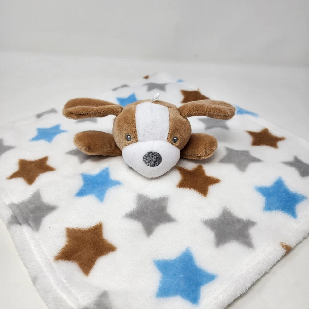 Baby Essentials Puppy Dog Stars Tan Blue Gray Security Blanket Lovey Brand: Baby Essentials Type: security blanket Size: approx 12.5" x 13" Condition: good used condition International customers: please note item cost and shipping does not include any import tax, VAT, customs fees or any other costs associated with the import of this item.' 190
