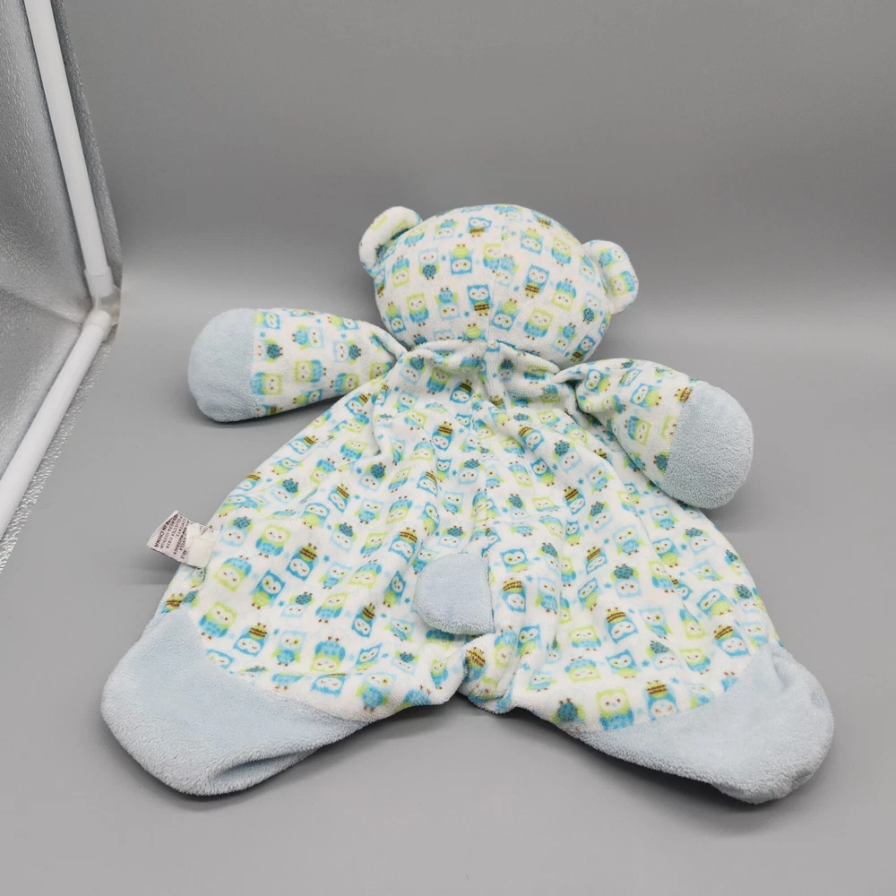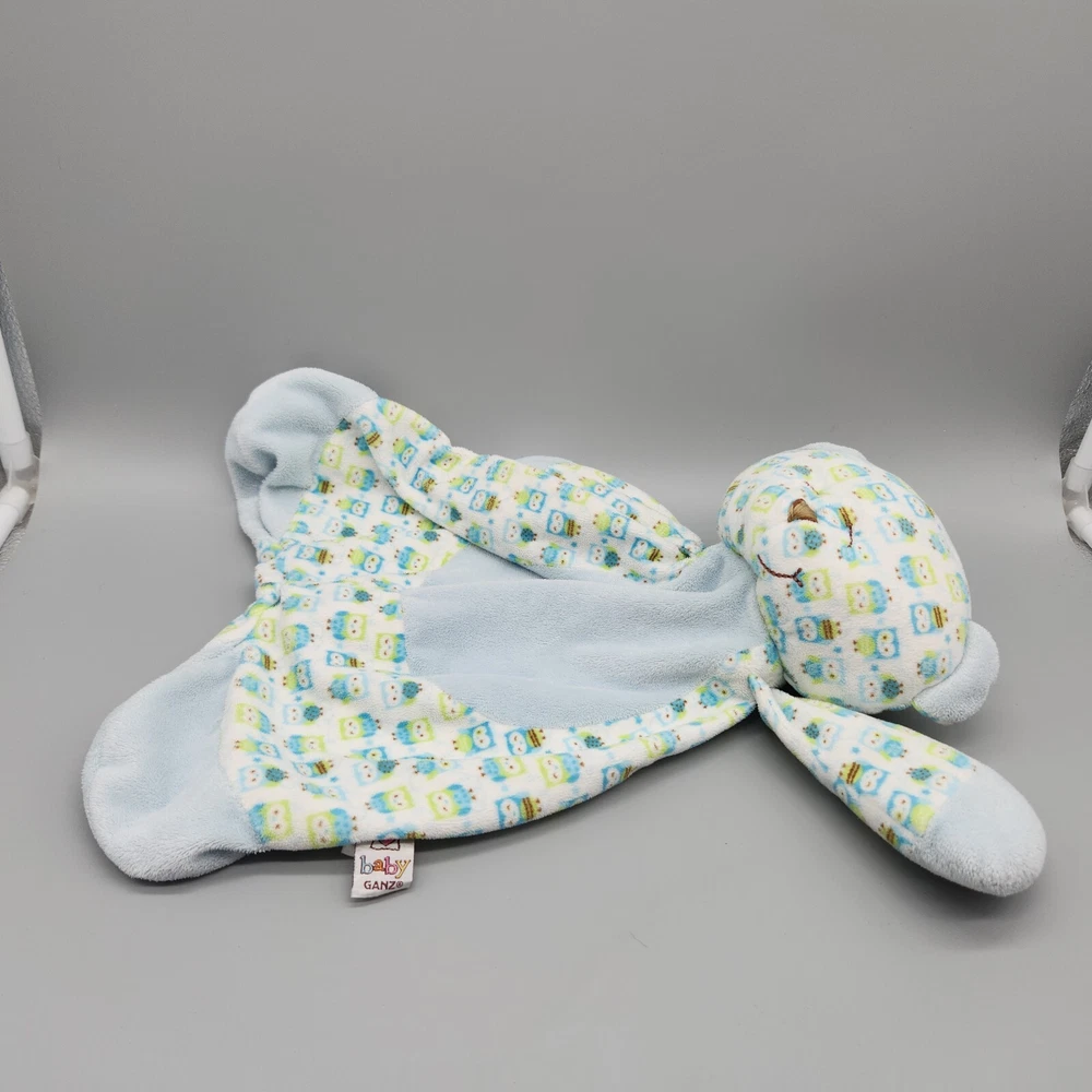 Baby Ganz Sleepy Time Bear Lovey Security Blanket Owl Green Blue Plush Flat Toy Approx 5" Long Good g ently loved pre-owned condition. Please see pictures for details.