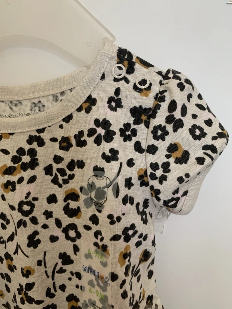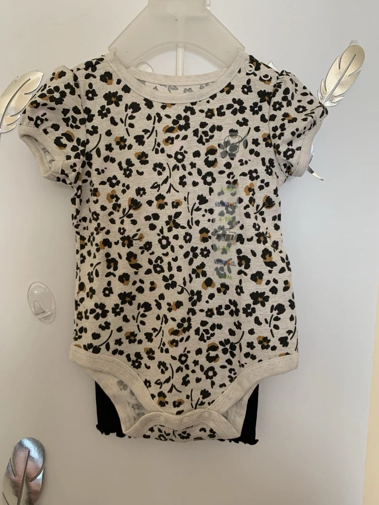 Introducing the stylish Baby Girl 2pc Top & Pants Leggings Set in size 6-9 months. This adorable outfit features a leopard print pattern top with a solid black color leggings perfect for both party and casual occasions. The short sleeve top and leggings are easy to put on with a pull on closure, made of comfortable polyester material that is machine washable for easy care. The cute animal-themed outfit is great for all seasons and has a trendy style that will keep your little one looking fashionable.