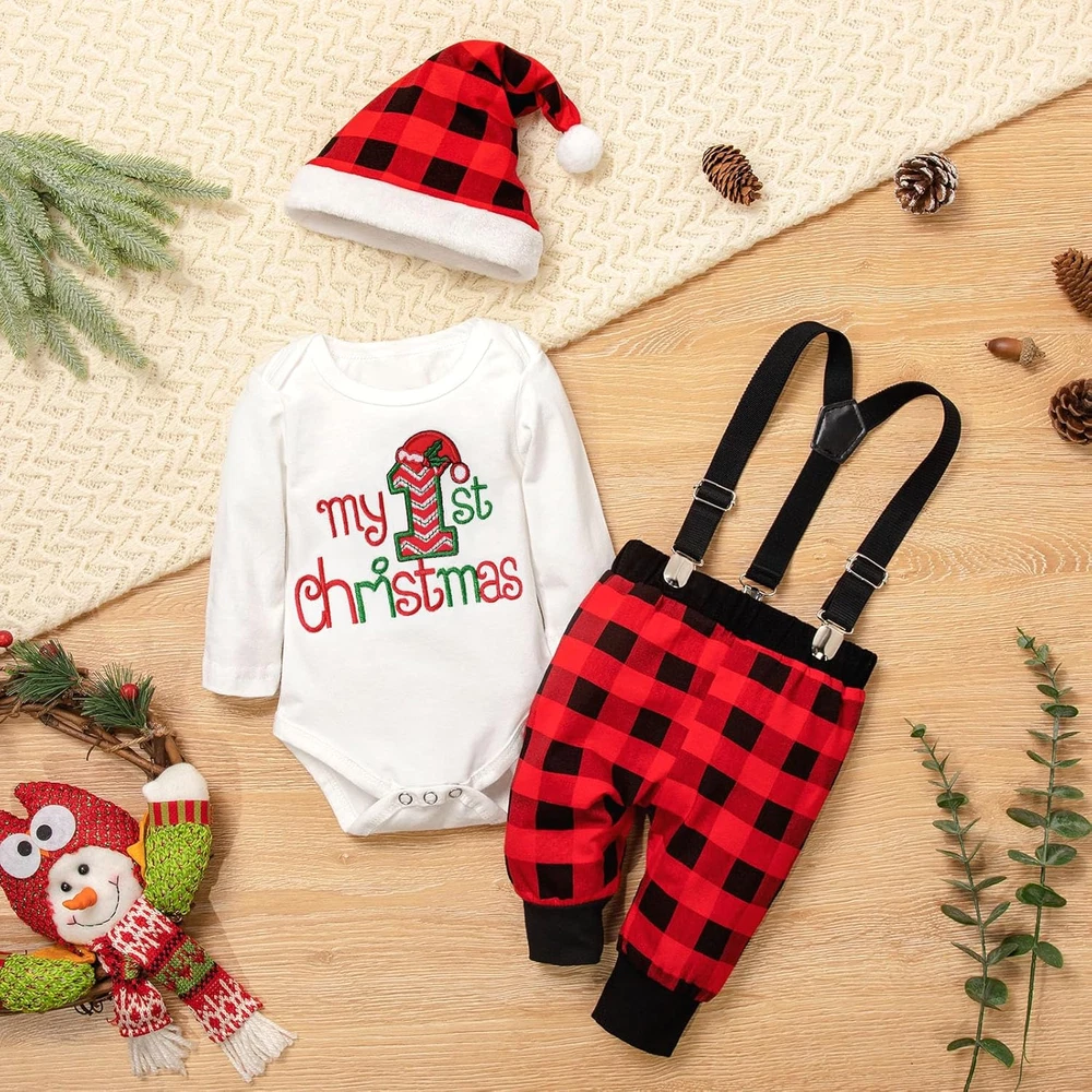 $ 44.88Christmas Baby Girl Plaid Romper Dress Ruffle Long Sleeve 0-3 Months Red-2