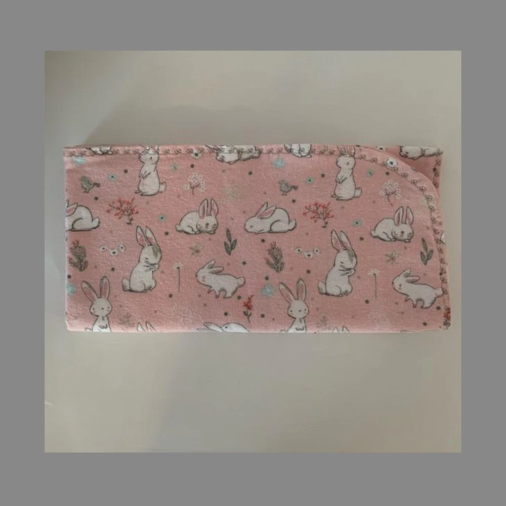 Baby Girl Bunny Reversible Cozy Flannel Blanket/ Stroller Blanket 32" x 32"