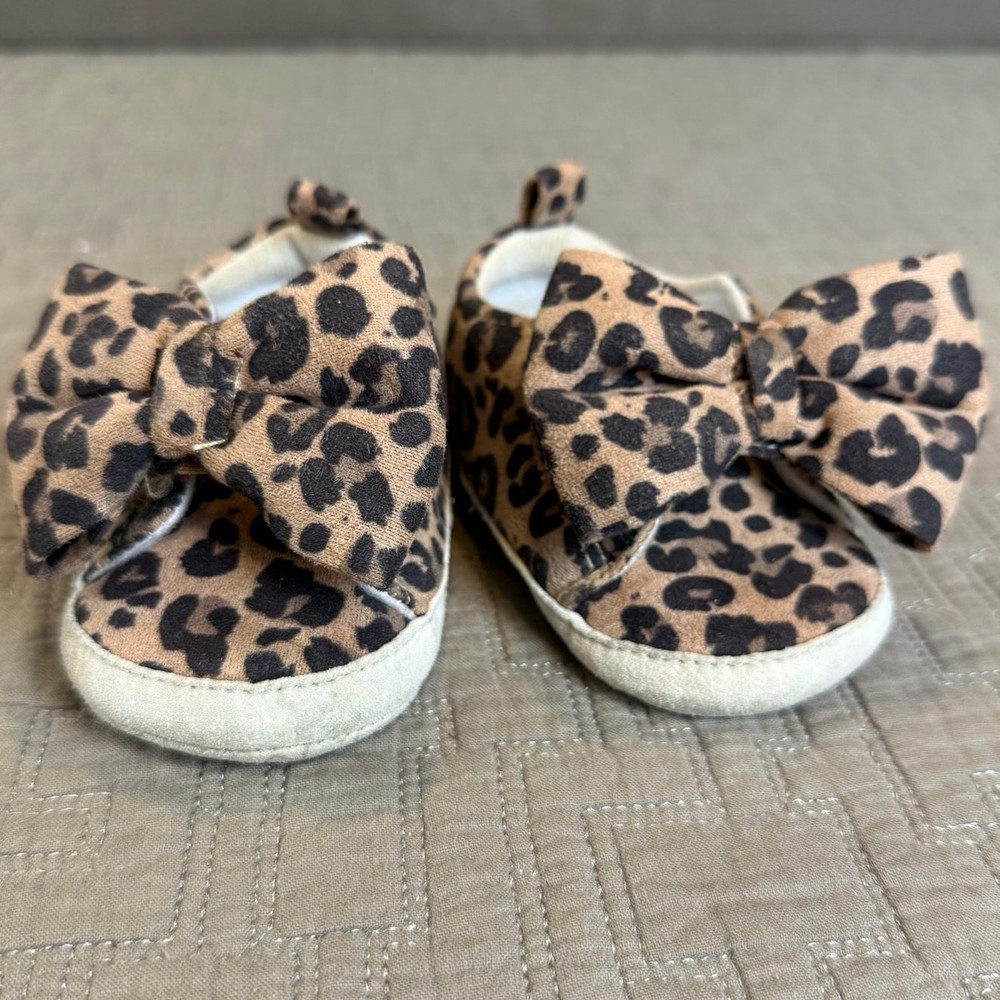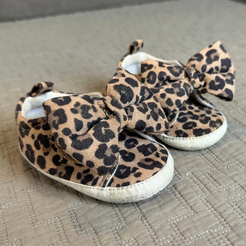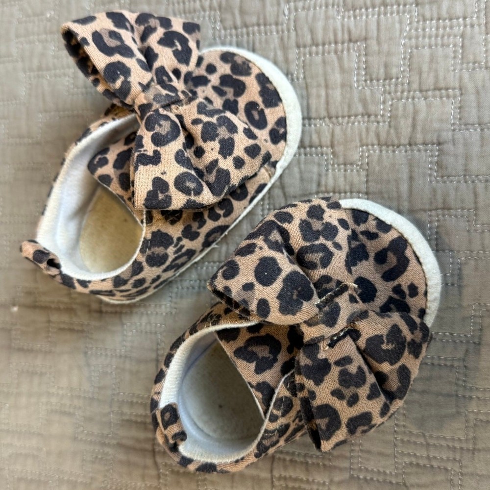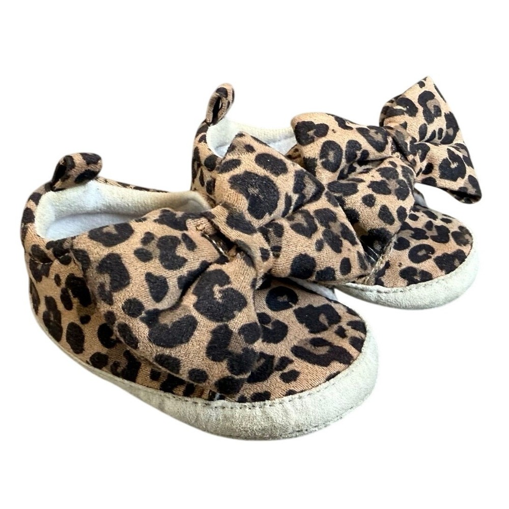 Baby Girl Soft Sole Shoes Cheetah Leopard Animal Print Bows Slippers Booties 9-12 Months Cat & Jack brand (tag is faded) Great condition, gently worn, minor wear to bottoms.