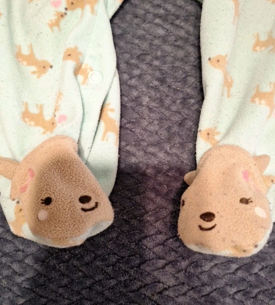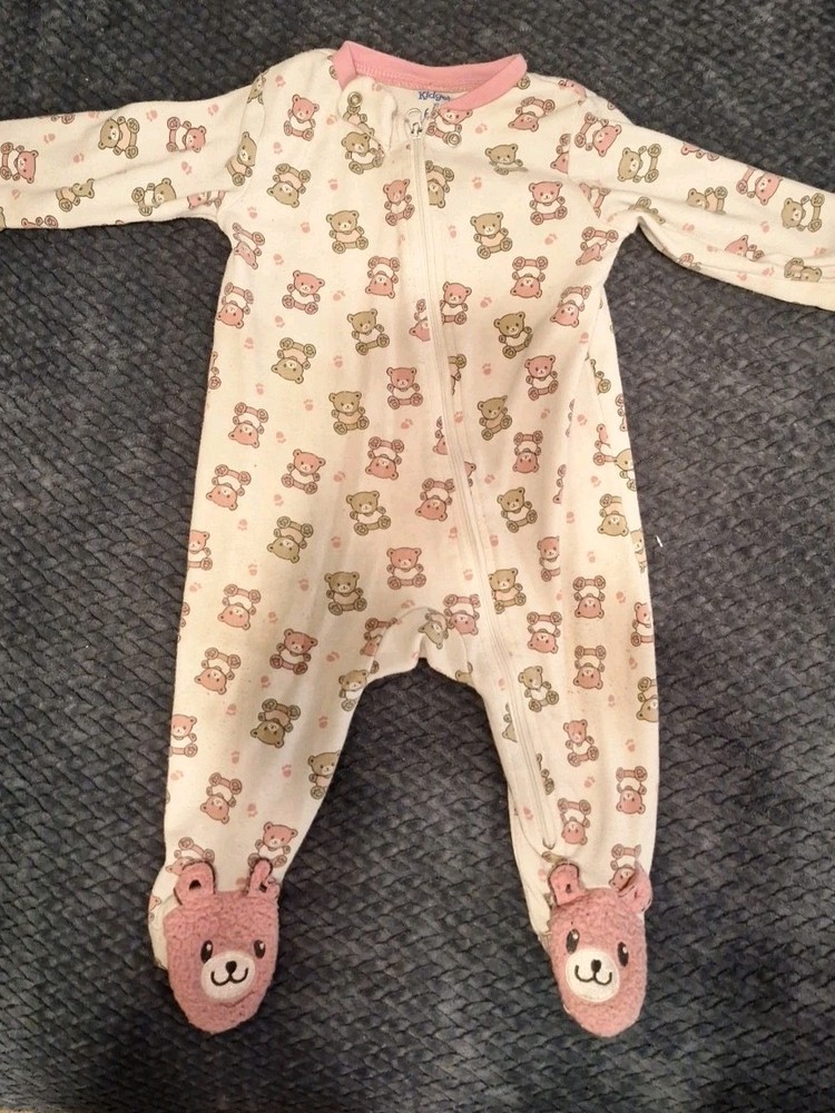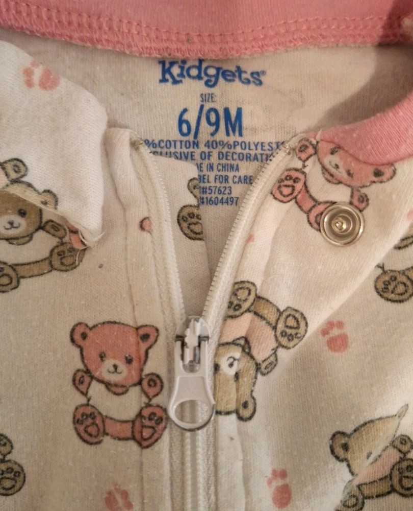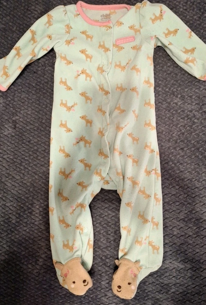 This lot of 3 sleepers-pajama sets in size 6-9 months is perfect for baby girls. Made from a comfortable cotton blend fabric, these long sleeve sleep suits feature an all-over animal pattern in a colorful design. The one-piece garments have a zipper closure for easy dressing and are machine washable for convenient care. Ideal for all seasons, these sleepers are a charming and cozy addition to any baby girl's wardrobe.