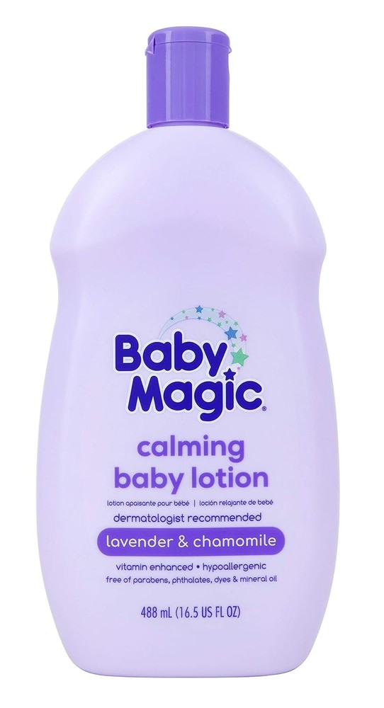 Baby Magic Calming Lotion | Helps Comfort and Relax 16.5 Fl Oz (Pack of 6) Product Details Product Dimensions : 8 x 6 x 8.5 inches; 7.5 Pounds Item model number : 705553 Manufacturer : Naterra International Inc. Country of Origin : USA Brand: Baby Magic Item Volume: 16.5 Fluid Ounces Item dimensions L x W x H: 8 x 6 x 8.5 inches Age Range (Description): Newborn,Infant,Toddler, child Special Feature: Hypoallergenic, Calming Use Baby Magic Lavender And Chamomile Lotion as part of your bedtime routine to help whisk baby away into a sweet slumber and stay asleep longer. Nighty-night! Each Baby Magic product is specially formulated for baby’s sensitive and delicate skin. Featuring nourishing formulas, comforting scents, and wholesome ingredients. To use: Gently massage Baby Magic Lavender Baby Lotion all over baby's body to soothe and relax. Apply lotion after using Baby Magic Lavender and Chamomile nighttime baby bath to complete your bedtime routine. Baby Magic Calming Lotion contains no parabens, phthalates, dyes and or sulfates. Dermatologist recommended and hypoallergenic for the sensitive skin of infants, from newborns to toddlers. Made in the USA, Baby Magic is a family-owned and operated business that has been delivering quality products at an affordable price to loving parents for more than 70 years. The perfect companion to a nighttime bath is calming baby Lotion to help baby wind-down into a sweet slumber. Specially formulated with soothing Lavender and Chamomile, the hydrating lotion helps keep skin kissably soft for a magical morning. Sleep tight!
