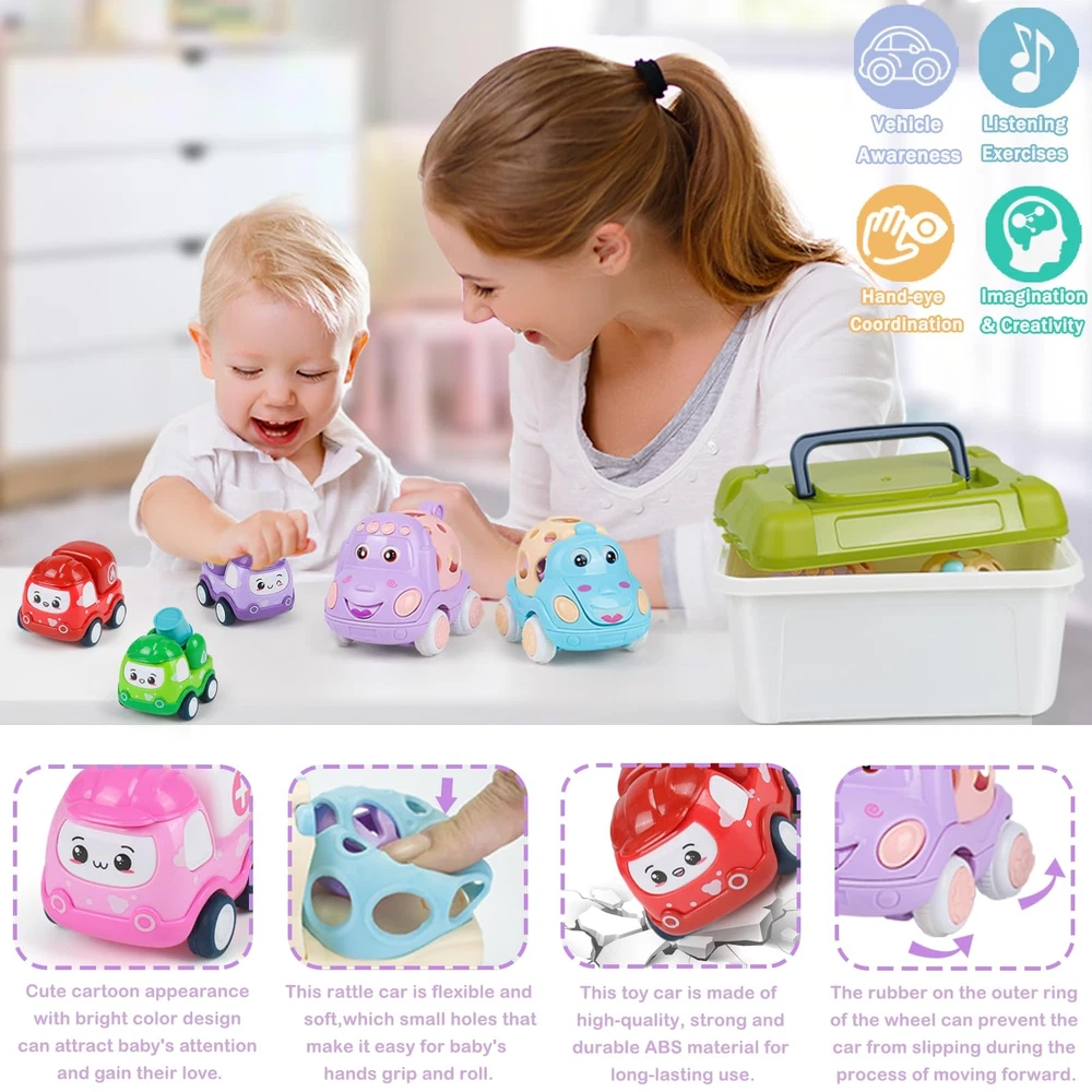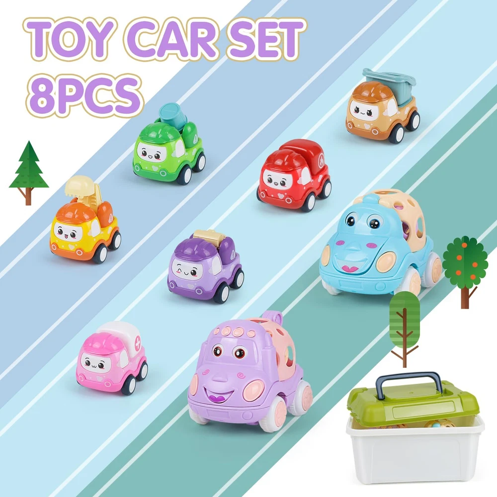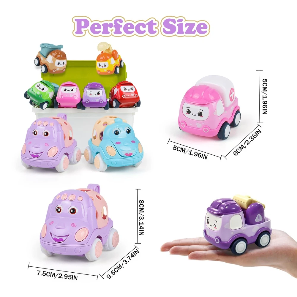 Baby Mini Pull Back Car Set for Toddlers 1-3, Rattle Roll Soft Car Toys for Infant, 8 PCS Push Vehicles Toy Car with Storage Box, Friction Powered Vehilces Idea Gifts for Boys Girls Description Product Description: Baby Mini Pull Back Car Set. There are 8 pack mini vehilces and a storage box, which contains a yellow excavators, purple cranes, brown forklifts, red fire engines, green passenger cars and pink ambulances and 2 soft rattle car. 6 Pack cartoon pull back cars have cute character design that capture toddlers imagination.Crafted from sturdy materials,can meet daily play without easily breaking or becoming damaged. The soft part of our rattle and roll cars are made of premium safe food-grade silicone for infants, and rattles can be boiled acceptable for staying hygienic. Each car looks bright in color and feel smooth, which will provide you non-toxic and secure using experience. Our pull back car set for 1 2 3 years old , This mini car toy set can create parent-child happy time, let your family indulge in happiness, great as a toddler travel toy! With a delicate gift box, toy cars for 1 2 3 years old perfect as preschool toys, teaching aids, Birthday gifts, toddler Easter gifts for 1 2 3 years old boys girls kids. With the after-sales service, if you have any questions about the product, you can contact the customer service. Cute Cartoon Toddler Car Toys Set: Mini car set for kids gifts included 8 pack mini vehilces and a storage box, which contains a yellow excavators, purple cranes, brown forklifts, red fire engines, green passenger cars and pink ambulances and 2 soft rattle car. These toy cars are well-built and engineered, colorful and cute for toddlers, these toy cars are sure to provide hours of entertainment. Pull Back Cars for Toddlers: 6 cartoon pull back cars have cute character design that capture toddlers imagination.Crafted from sturdy materials,can meet daily play without easily breaking or becoming damaged. Are you worry about that toys were thrown everywhere? Our storage box can easy to storage all the cars or go for a travel.You can say goodbye to clutter. Simply pull the car backward, release, and watch it zoom forward with ease, providing endless entertainment for your child. Rattle Car for Toddlers: Push and go car is powered by friction. Push animal cars forward, and they'll go ahead on themselves with rattle makes fantastic sound. The moving eyes on these adorable cars can capture your toddlers's attention.And equipped with sturdy hooks, easily connect to other car toys.Encouraging visual tracking and enhancing cognitive development as your child explores and interacts with the car. Durable and Safe: Made of high-quality ABS material and without sharp edges or corners, non-toxic and no sharp parts, no small parts. Our car toys make it safe and it is no harm to your kids. Our push and go car have soft round openings that easy grasp and play, light weight, baby can carry it easily. Great Kids Gifts Ideals: Our pull back car set is suitable for kid fans who love cars. This mini car toy set can create parent-child happy time, let your family indulge in happiness, great as a toddler travel toy! With a delicate gift box, toy cars set is perfect as preschool toys, teaching aids, Birthday gifts, toddler Easter gifts for boys girls kids, why not choose it! Shipping from the USA All of our products are shipped from the USA, ensuring quick delivery to your destination. Payment We offer the following payment methods: PayPal, credit card, bank transfer, and eBay's secure payment system. Free Shipping & Free Returns Shipping within the USA is FREE. Additionally, any return is absolutely free for you. Risk-Free Purchase You have the option to return an item within 30 days without any justification. We cover the return shipping costs! Fast Shipping We ship immediately upon receipt of payment. Generally, the package is delivered within 2-3 days in the USA. If it takes longer, we will contact you. Quality and Costs Made in Europe, USA, China No customs fees or additional charges Total satisfaction guarantee Invoice with declared VAT available upon request in .pdf format Feedback Your feedback is very important to us. After you pay for your purchase, you will automatically receive positive feedback from us.