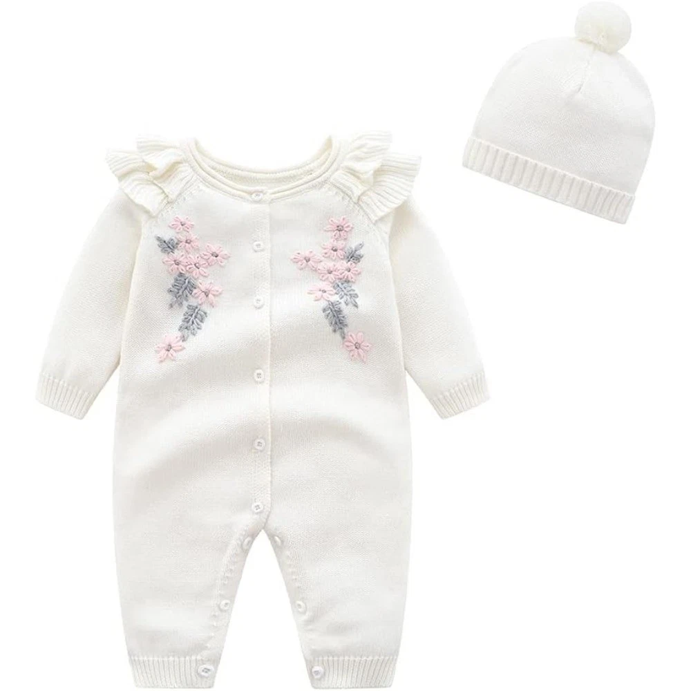 Baby One Piece Romper, there are many colors and styles, no matter what season, you can find suitable clothes. Occasion: Baby sweater romper perfect for daily wear,winter wear, Christmas,Birthday Party,Halloween Holiday, photography, daily wear, family day, baby shower etc. Warm baby girl sweater outfits,your girl must love it! Size: Newborn romper fall winter outfits suitable for 3-6 6-9 9-12 12-18 18-24 months infant baby girls. Please refer to the size chart before choose a size. Color: Pink/White/Navy Blue/Red/Beige/Yellow(Optional) A set of 2pcs: 1 x Baby girl sweater romper +1 x Hat Tip: The romper hats can be machine washed in cold water, however, hand washing is always recommended. Size (inch) 59 Bust: 20.47 Length: 22.05 Age: 3-6 Months(Suggest Height: 21.6-24inch) 66 Bust: 21.26 Length: 22.83 Age: 6-9 Months(Suggest Height: 24-25.9inch) 73 Bust: 22.83 Length: 24.02 Age: 9-12 Months(Suggest Height: 25.9-28.7inch) 80 Bust: 23.23 Length: 24.8 Age: 12-18 Months(Suggest Height: 28.4-31.4inch) 90 Bust: 23.62 Length: 26.38 Age: 18-24 Months(Suggest Height: 30.7-35.4inch) Please check the Size Chart carefully in the last picture carefully before order and allow 0.3-1.2inch measuring deviation due to measuring tools. Please note that slight color difference should be acceptable due to light and screen.