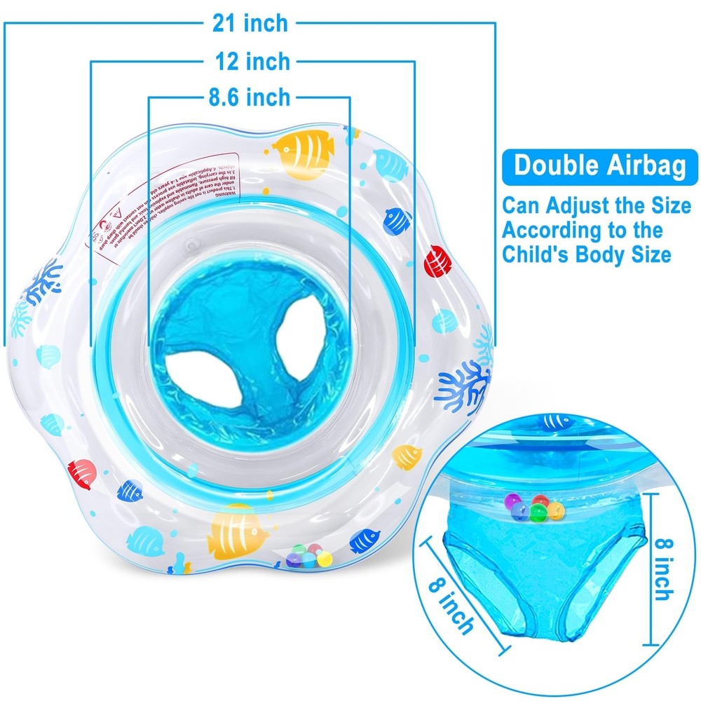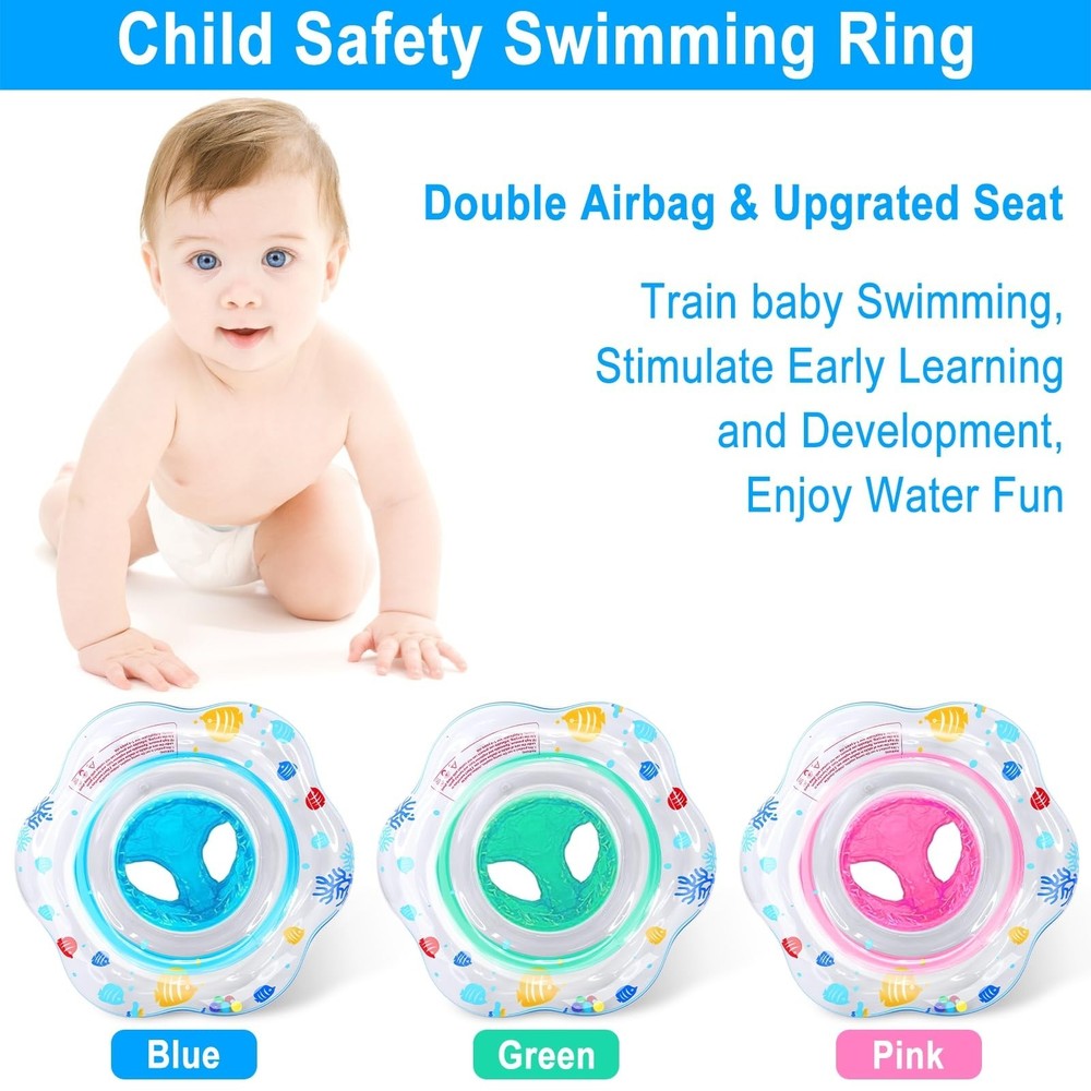 This baby pool float is a game-changer for water play! The double airbag safety seat keeps my little one secure and comfortable while splashing around. It's lightweight, easy to inflate, and perfect for both pool and bathtub fun. The bright blue color is adorable, and the sturdy PVC material gives me peace of mind. My 8-month-old loves sitting in it during swim time - definitely recommend for parents of infants!