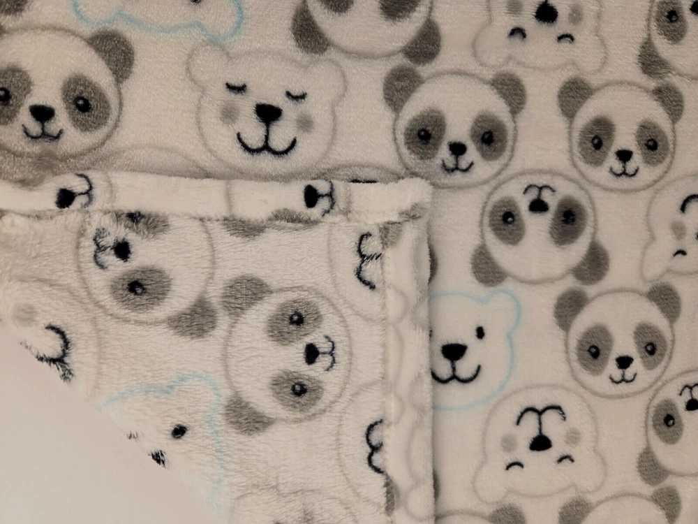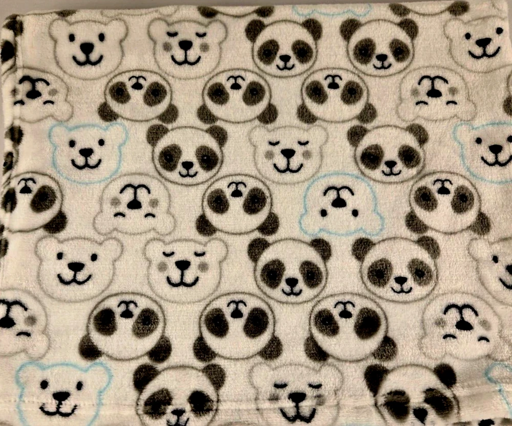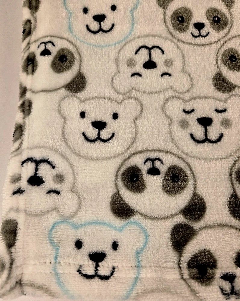 Baby Starters Baby Blanket Panda Polar Bear Heads White Gray Blue Fleece Lovey