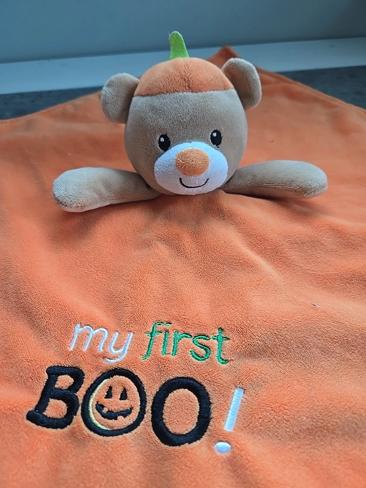 Baby Starters My First Boo Halloween Pumpkin Bear Lovey Rattle Security Blanket 14" gently loved from a pet free smoke free home