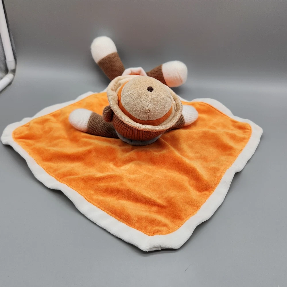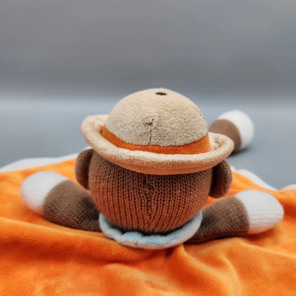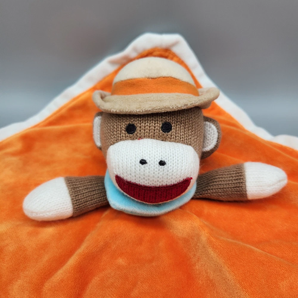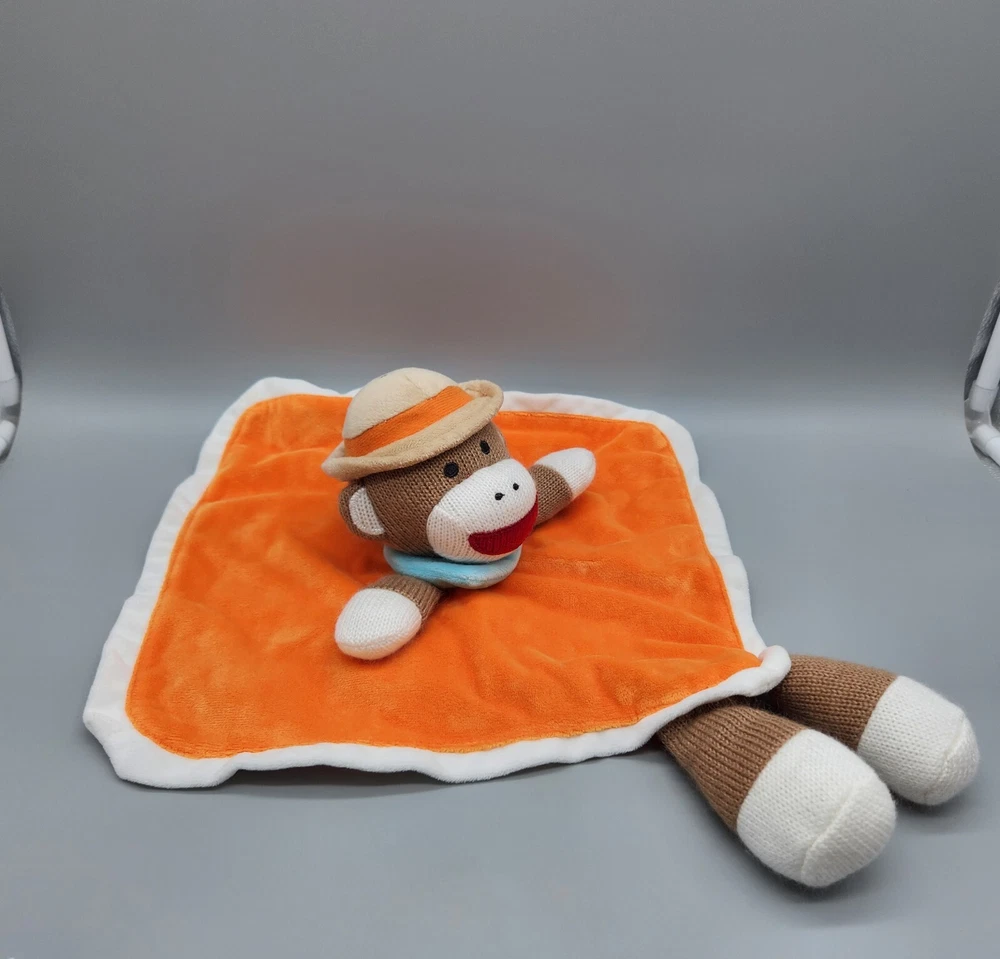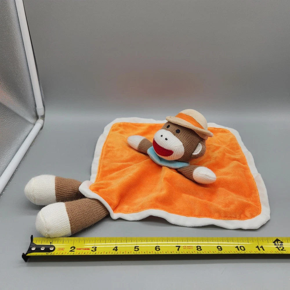 Baby Starters Sock Monkey Lovey Orange Security Blanket Rattle Satin Knit Plush Good gently loved pre-owned condition. Super cute. See photos for details.