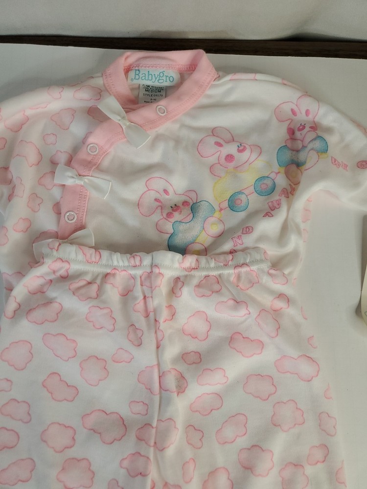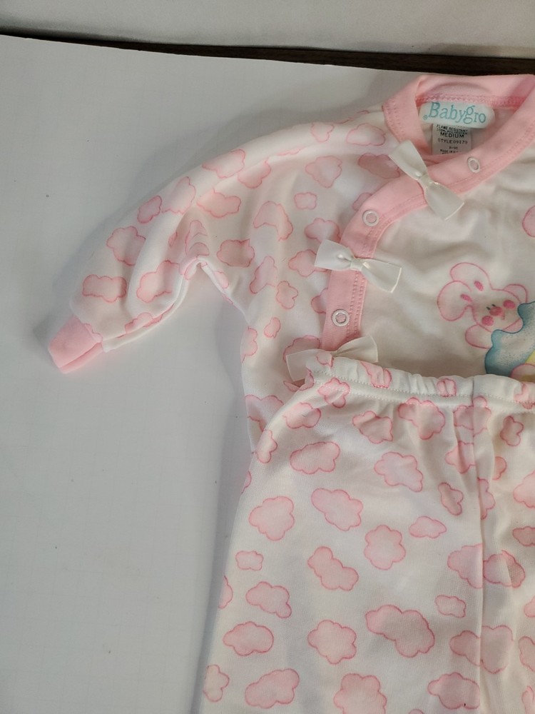 Vintage yellow checkered baby footed sleeper with a frog appliqué.