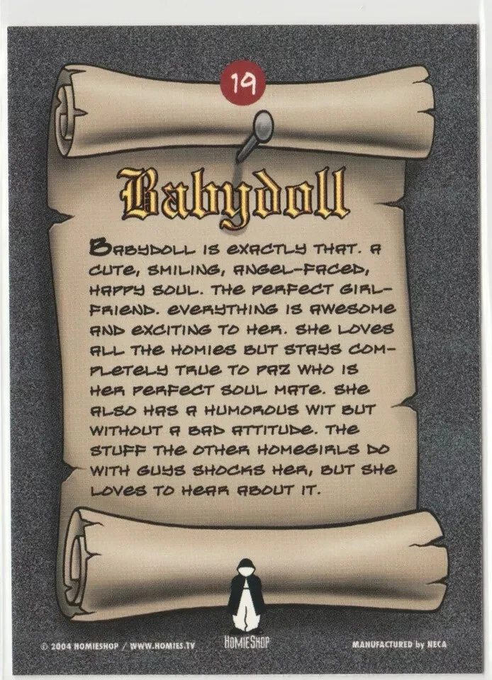 Babydoll #19 Homies Swap Cards 2004 NECA Lowrider Chicano Barrio East LA personal stock photos centering of cards may vary compared to listed images