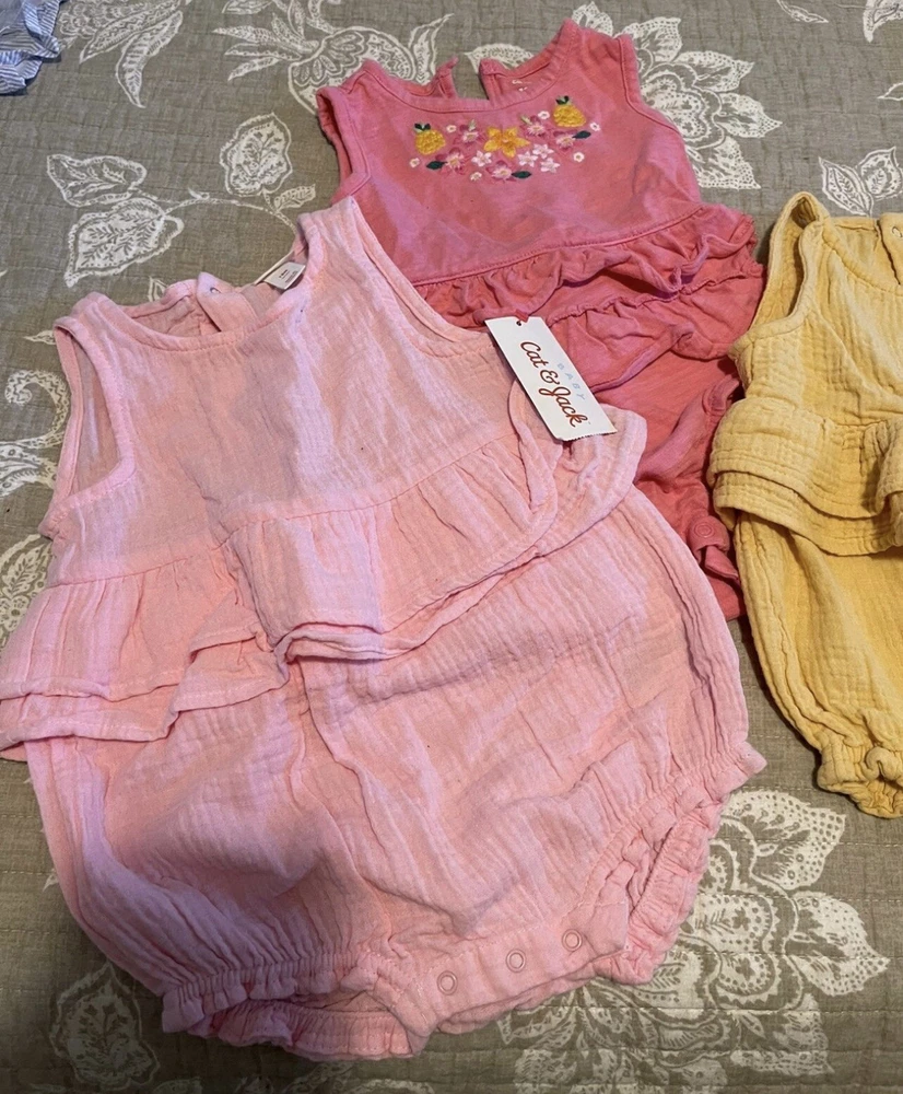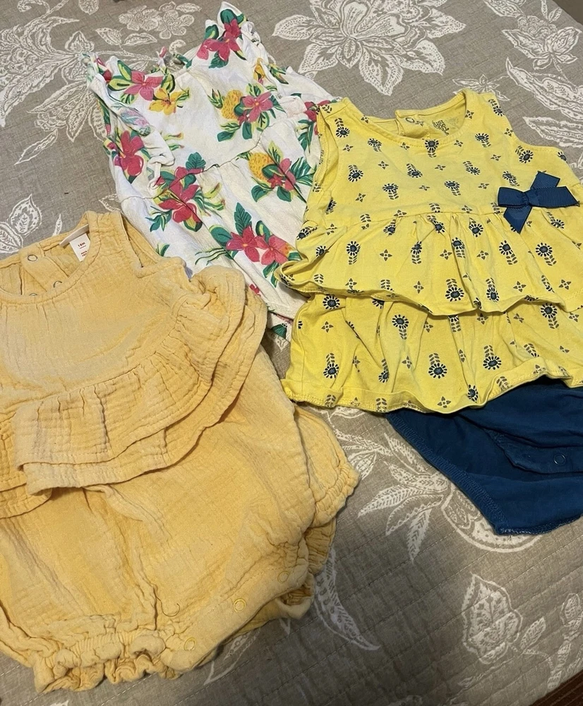 ONLY WORN ONCE ! NO STAINS NOR RIPS. FROM A SMOKE AND PET FREE HOME. This beautiful set of 5 dresses is perfect for your little girl! Made for unisex baby & toddler wear, these knee-length sundresses are great for any occasion. The vibrant multicolor patterns are sure to make your baby stand out, and the high-quality materials ensure comfort and durability. Each dress is expertly crafted to fit 18-month-old babies, making them a perfect choice for parents looking for stylish and practical outfits for their little ones.