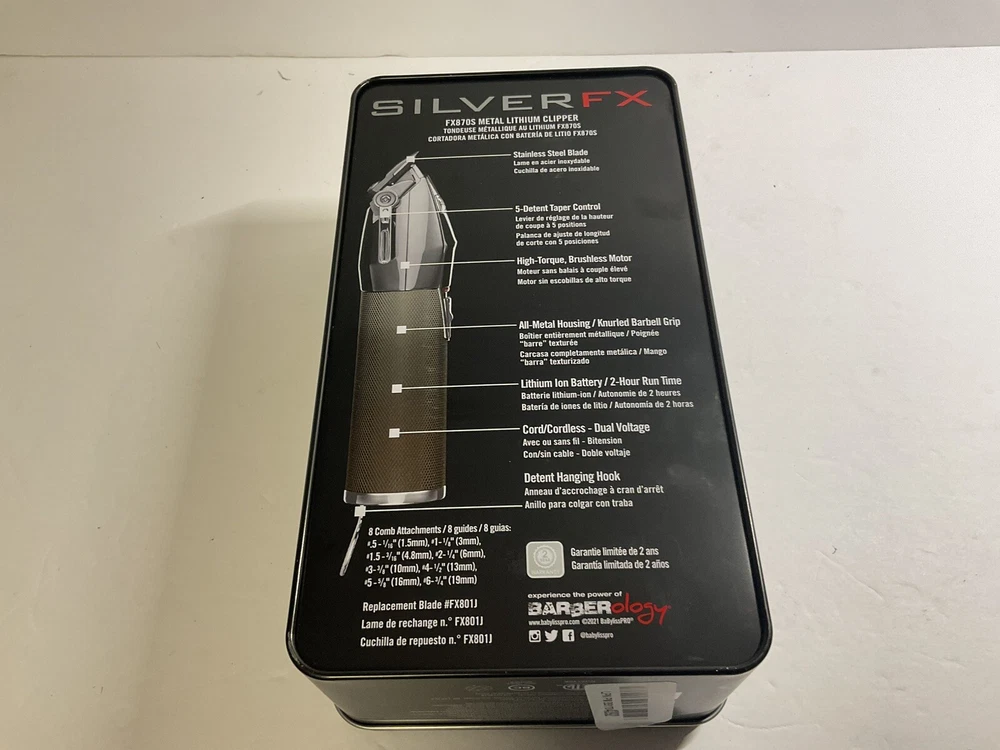 Babyliss Pro Silver Hair Clipper Metal Trimmer FX870S With Guards.