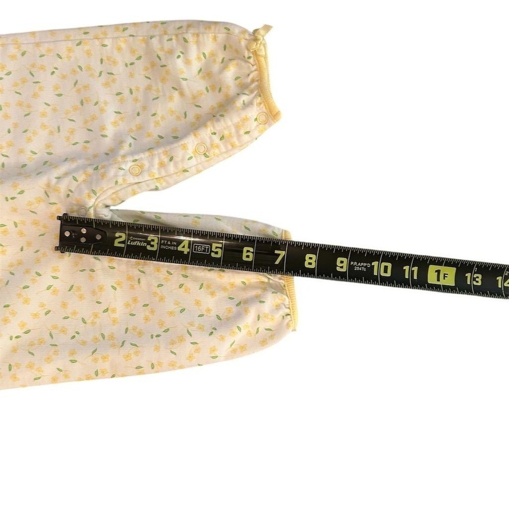 Babyworks baby girls yellow floral bear smocked romper jumpsuit. This adorable one-piece features a sweet teddy bear embroidery with the words "little flower" on the front bib. The romper has a delicate yellow floral print on a white background and is finished with ruffled cap sleeves and a Peter Pan collar. Perfect for playtime or a special occasion. Measurements: • Waist: 11 in • Inseam: 9 in • Length (shoulder to crotch): 17 in • Length (shoulder to ankle): 23 in Department: Unisex Baby & Toddler Style: Romper Character: Bear All items come from a smoke free, pet friendly home. All of items unless NWT or Dry Clean Only are washed with Tide. We try our best to disclose any flaws with items, if we miss something please reach out and let us know. We offer combined shipping on all our items.