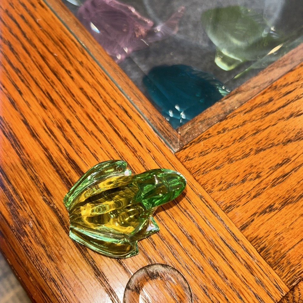 Beautiful pale green Baccarat crystal frog. It measures about 2” long. It is in excellent condition, and fully marked in the bottom. I can feel I little rough spot in a toe, but I can’t see anything. Probably a tiny flea bite, otherwise excellent condition. I can combine on shipping whenever possible.