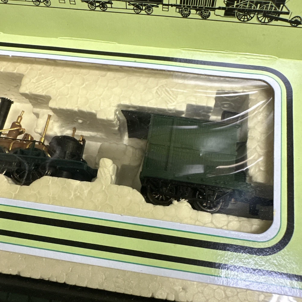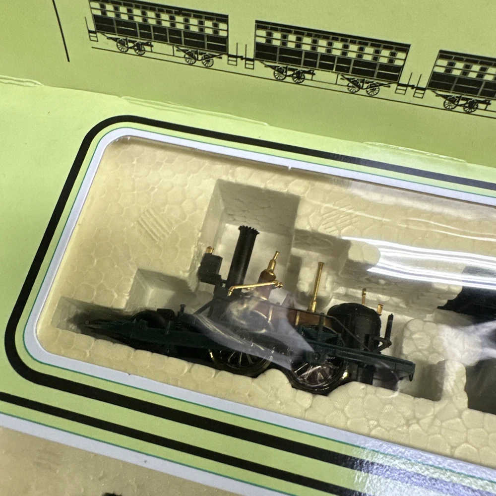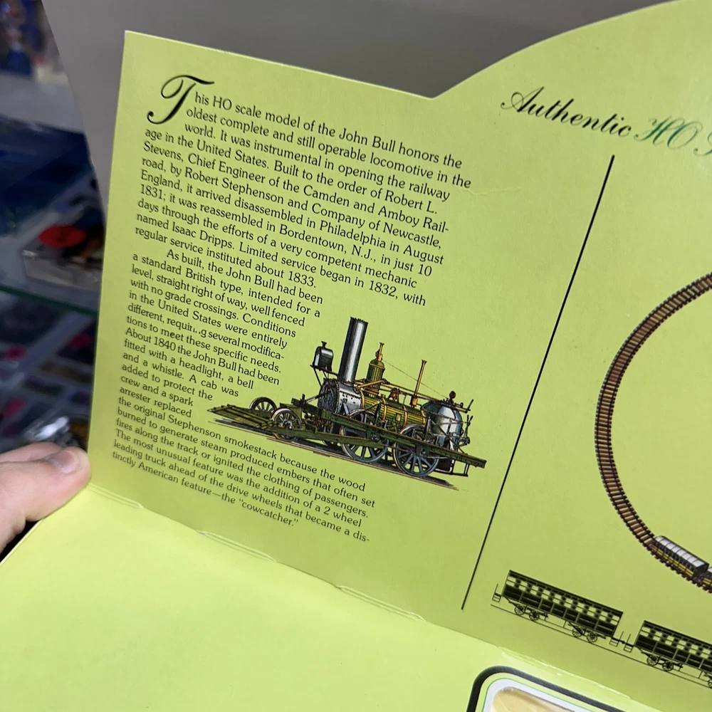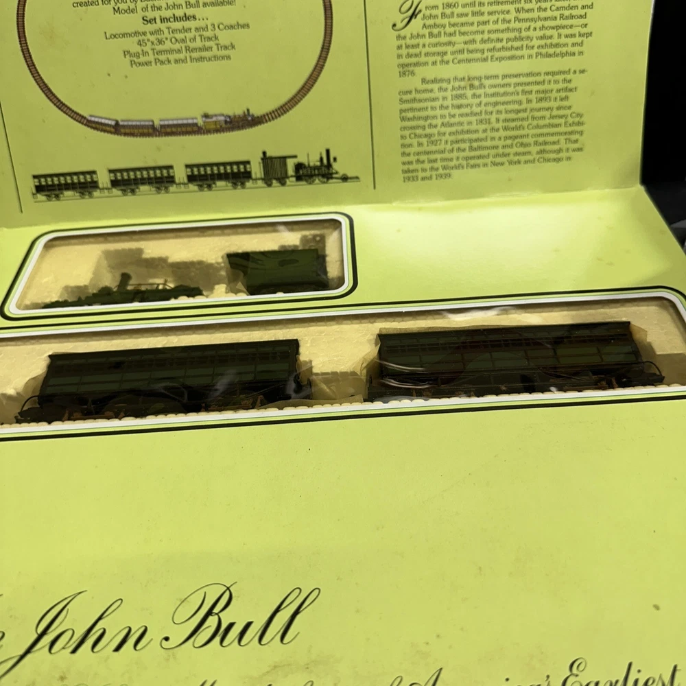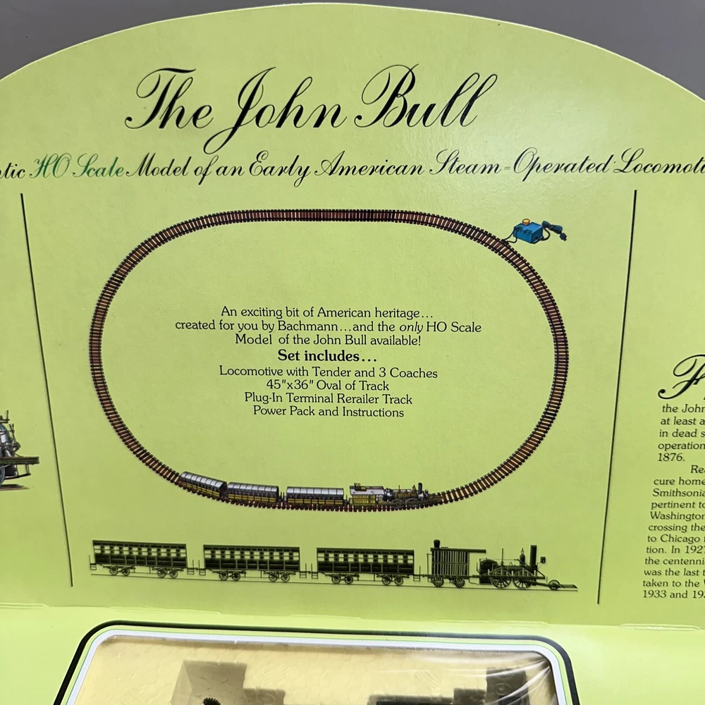 This set has only the locomotive & 3 coaches. Does not have the power pack or the rails. This Bachmann 40-140 HO Scale Electric Train Set is a great addition to any model train collection. The set includes 15 pieces and features a multicolor design with brass, plastic, and diecast materials. It is an unassembled kit with a C-9 Factory New-Brand New grade and comes in a limited edition painted design. The set includes an electric control system and light function, making it a fun and unique addition to any display. The John Bull corporate roadname and trains theme make it a vintage piece that is sure to impress. Manufactured in Hong Kong in 1990, this Bachmann starter set is perfect for any collector or hobbyist.