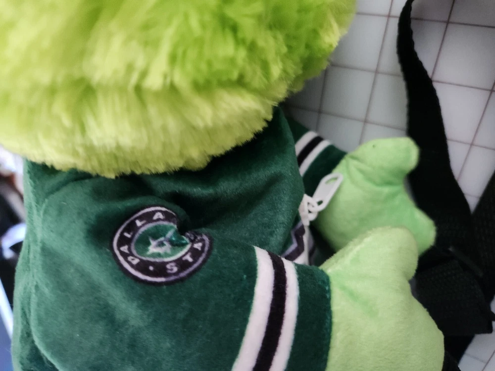 This is a 17" green backpack featuring the Dallas Stars' mascot, Victor E. Green, as a plush toy. The backpack is an officially licensed product of the National Hockey League (NHL) and is made by FOCO. It is designed for regular season use and is perfect for hockey fans who want to show their support for the team.