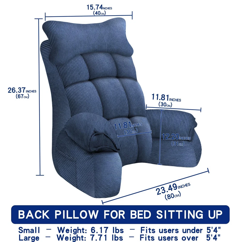 Back pillow for bed sitting up (26.37" H x 31.49" W) delivers solid bed reading pillow back support with 11.81" armrests. This reading and gaming pillow features shredded memory foam, contouring to relieve back/arm fatigue. As essential back pillows for sitting in bed for adults, it excels in reading/gaming anywhere. Adjust stuffing for comfort; machine-washable cover keeps fresh. Vacuum-sealed—expands in 72 hours for ultimate bed pillow for sitting up experience. Back pillow for bed sitting up: This reading pillow is 26.37 inches in height and 31.49 inches in width, offering solid back support. Each armrest extends 11.81 inches, and the height has been upgraded to 12.20 inches. This bed reading pillow can help relieve back fatigue while relaxing and provides additional support for your arms, making reading more comfortable. Reading Pillow Is Versatile: This reading and gaming pillow excels for reading, watching TV, working, or gaming in bed. As the ultimate reading pillows for sitting in bed adult, it also delivers comfort on sofas or floors. Stay relaxed and supported during any activity. Comfortable Reading and Gaming Pillow: Filled with shredded memory foam, this bed pillow for sitting up delivers excellent support. It contours to your body, supporting back, arms, neck, and shoulders while staying clean, soft, and quick to rebound. If the pillow feels too big/high/hard? Simply unzip, remove stuffing, and enhance comfort. Adjust every angle for ultimate comfort with our back pillows for sitting in bed.can be disassembled and washed to help keep it fresh and tidy. An ideal back pillow for bed sitting up—the thoughtful gift for loved ones. Vacuum-Sealed Reading Pillow: Our reading pillow comes vacuum-sealed for cleanliness and easy transport. After opening the package, please allow 72 hours for it to expand to its full size, and it can be fluffy by patting in the sun,and then you can enjoy a more comfortable experience. Whether at home or in a dorm, this pillow is an ideal choice for sitting or lounging. Original Design, U.S. Design Patent No.: US D 1,065,874 S