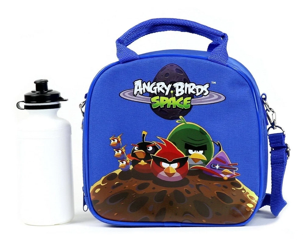 New Angry Birds Space Lunch Box Blue Bag with Shoulder Strap and Water Bottle!! Blue Angry birds Adjustable Shoulder Strap Approximately 8.9" x 9.0" x 3.10" *Licensed Product* INSIDE THE MAIN COMPARTMENT: 1 SLOT POCKET & WATER BOTTLE HOLDER DETACHABLE AND ADJUSTABLE LANYARD LENGTH: FROM 20" TO 38" / 1" WIDTH. INSULATED MATERIAL AND INCLUDE: WATER BOTTLE BAG IS MADE OF A DURABLE MATERIAL