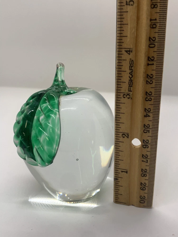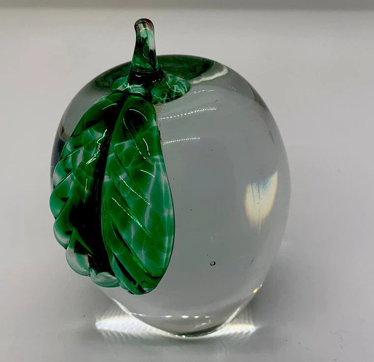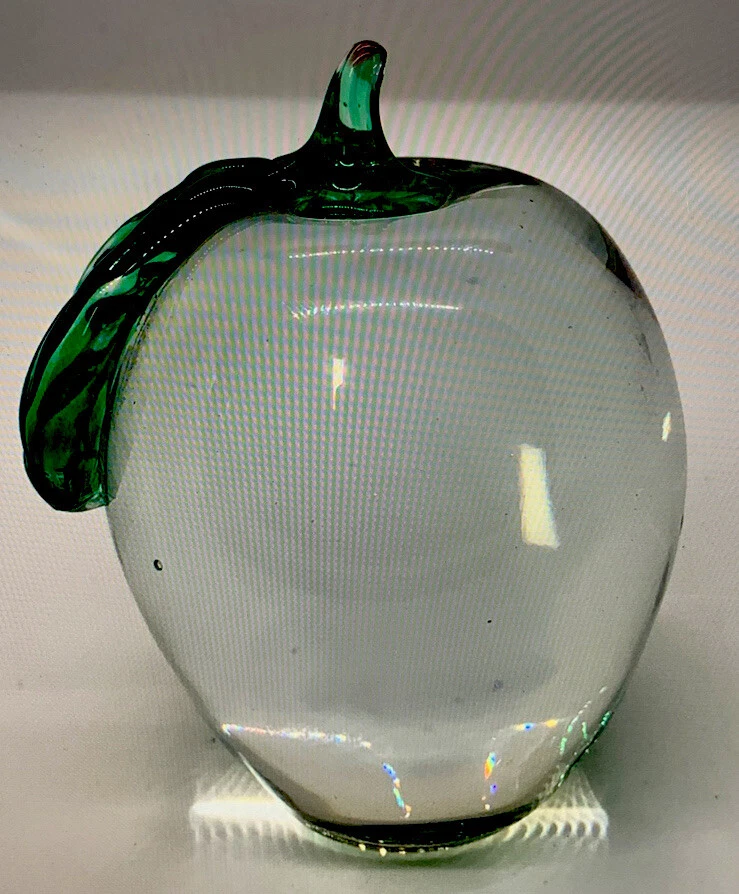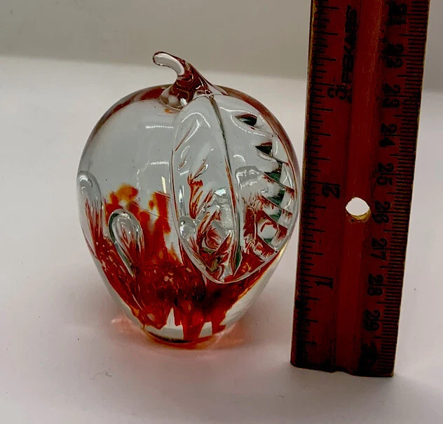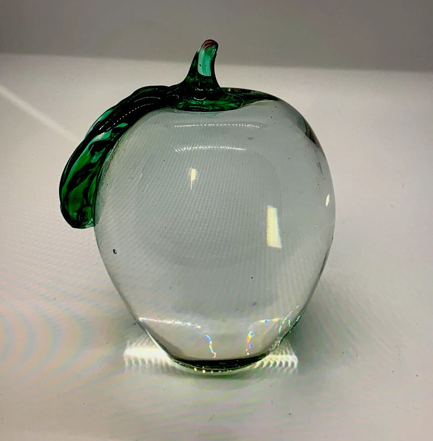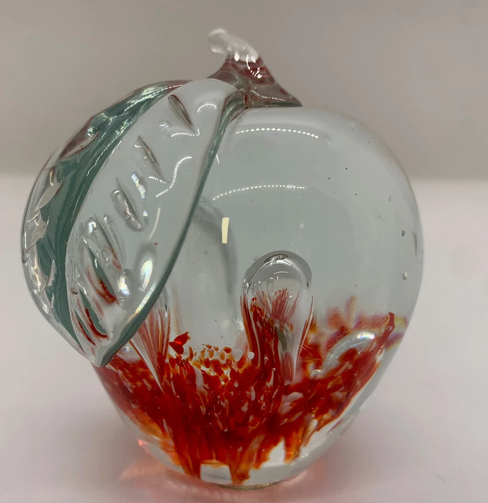 Type: Paperweight Production Technique: Hand Blown Glass Material: Glass Theme: Apple Brand: Park Tudor School/unbranded Vintage: Yes Era: Unknown Color: Clear/green/red