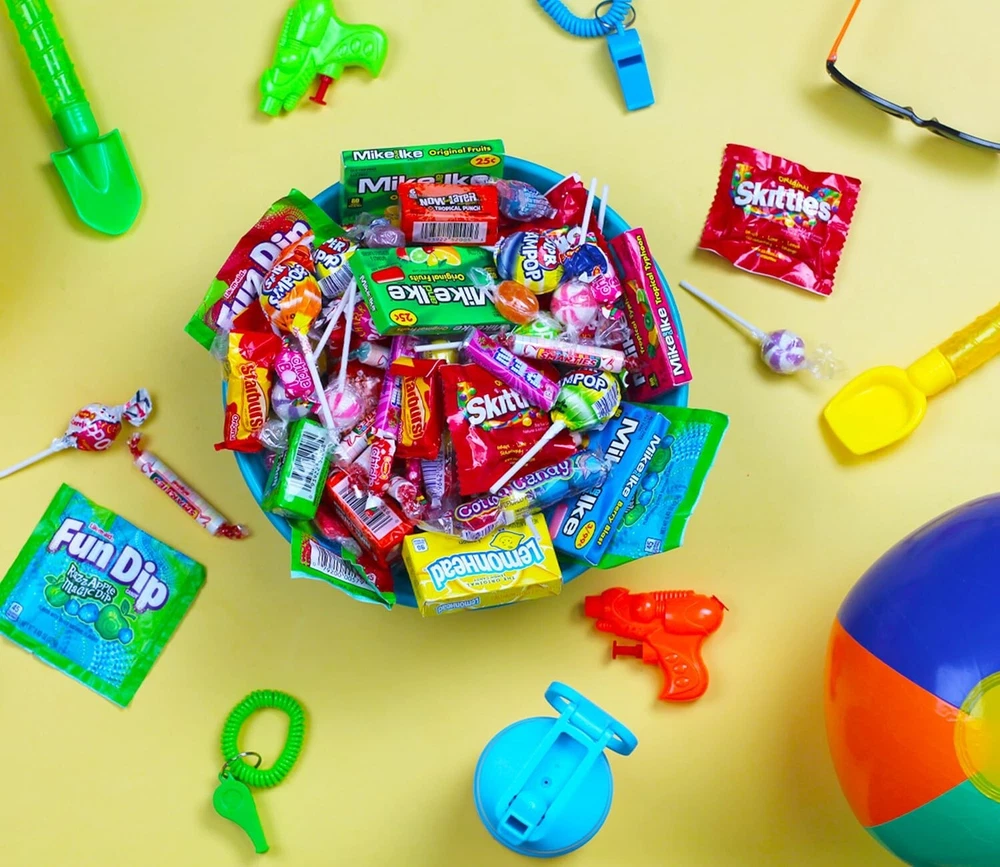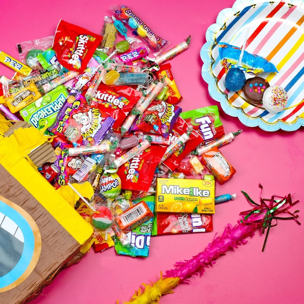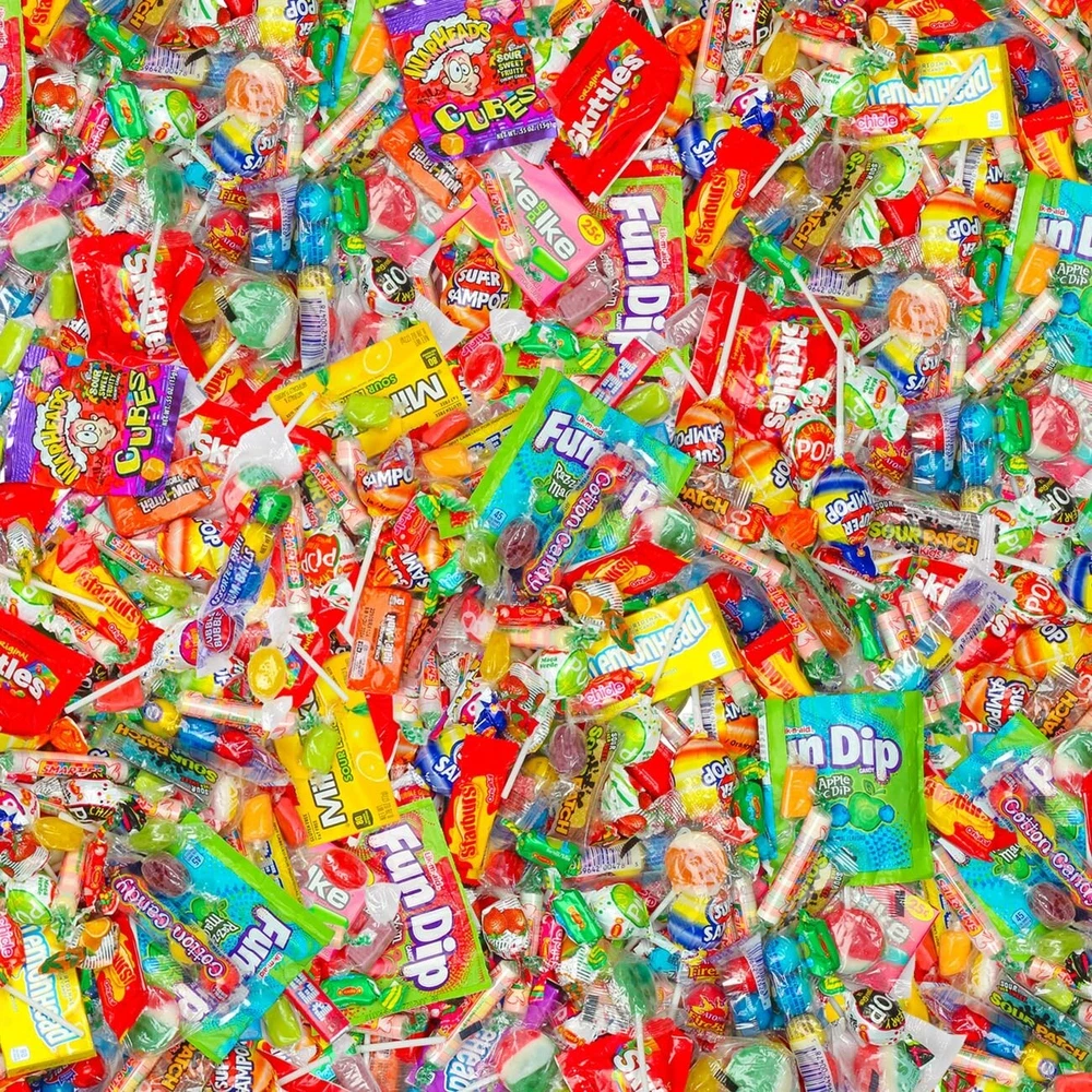 Back To School Bulk Candy - Pounds - Halloween Bulk Candy - Assorted Pinata Stuffer Filler Candies - Birthday Party Candy Favors - Goodie Bag Stuffers - Bulk Candy for Offices, Schools, Claw Machines Individually Wrapped Bulk candy pinata assortment is a perfect way to enjoy a variety of pinata candies at a great value. Great parade candy that will be loved by kids/teens of all ages (and adults too). Enjoy these sweet candies treats with many enticing flavors of the classic pinata candy you crave. Bulk candy variety bag assortment is ideal for any occasion, whether you want to share it with your friends, enjoy it as a snack, or use it as a candy buffet or a candy gift basket. Great for Christmas, parties, parades, goodie bags, carnivals, pinatas, or any occasion for sugary treats. May include fruity chews, dipping candy, lollipops, tropical chews, fruit chew rolls, bubble gum, popping candy, fruity gummies, sweet discs, fish gummies, sour gummies, and hard candy. Item is a variety and MAY NOT INCLUDE ALL LISTED CANDY. Includes Pounds of pinata candy! Try this bulk candy assortment today and experience the sweetness of candy! Items are repackaged in a facility that may contain milk, soy, peanuts, tree nuts, eggs, wheat and all other allergens.