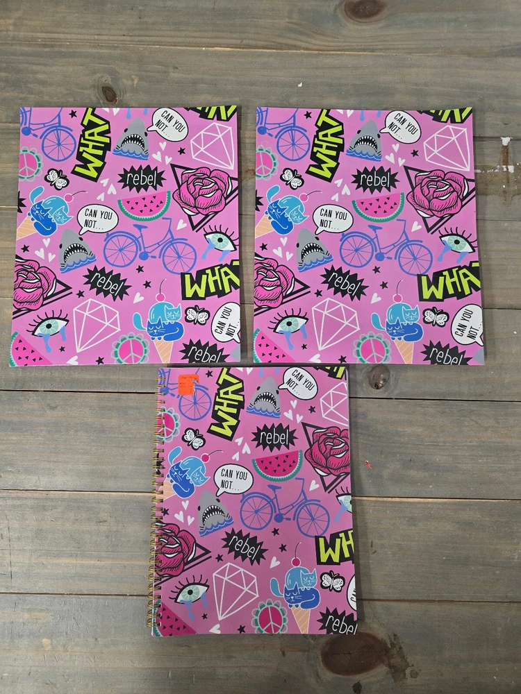 Need a large lot of supplies? Send us a message with the items you would like us to send you a bundle offer on and we will send an offer you won't want to refuse!! Including each items item number would be helpful. Check our store category 'Back To School' to see everything we have available.... now for the description of this item........ Offering a number of different fun whimsical themes - this listing is for a back to school bundle for elementary / middle school (K-8), aged boys and girls. The bundle includes one 1 subject spiral notebook, wide ruled. It also includes 2 matching two pocket file folders. All items are new with store tags/labels. Many different themes and styles to choose from. FREE SHIPPING so take advantage and stock up. The default photo's show the quality and features of the notebook and file folders. Each theme is for the same brand - just the different theme you choose. Great for Back to School supplies for boys or girls. Bundle with our other items to save money on shipping. Offering here far below retail to help offset the high cost of school supplies. Thank You for looking and be sure to check our other auctions and store listings for great deals. We gladly combine shipping to save you money. Thank You again for looking and for supporting our Florida based small business. (internal) box5