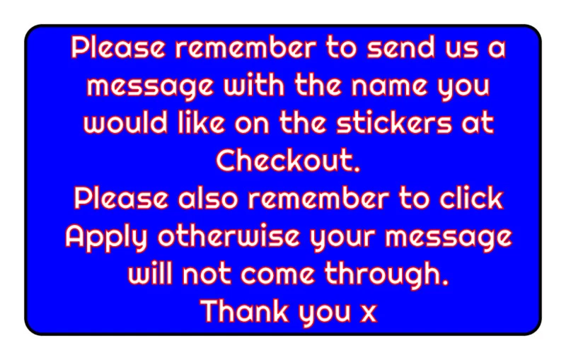 You will receive 24, 35 or 48 x Round Self Adhesive Stickers in your choice of Matte or Gloss Label Size 24 Per Sheet Label Size 45mm x 45mm 35 Per Sheet Label Size 37mm x 37mm 48 Per Sheet Label Size 30mm x 30mm To order simply choose the quantity and then click Buy It Now. If buying more than one design please ensure you add all items to your basket prior to checkout. Postage is FREE for all orders. All orders are usually dispatched within 24 hours Items are sent via Royal Mail 2nd Class as standard however we have the options of 1st Class and Next Day Courier available at checkout Free P&P to the UK Only Unfortunately we are unable to accept returns on personalised stickers. Please see our shop for all our other personalised labels and stickers