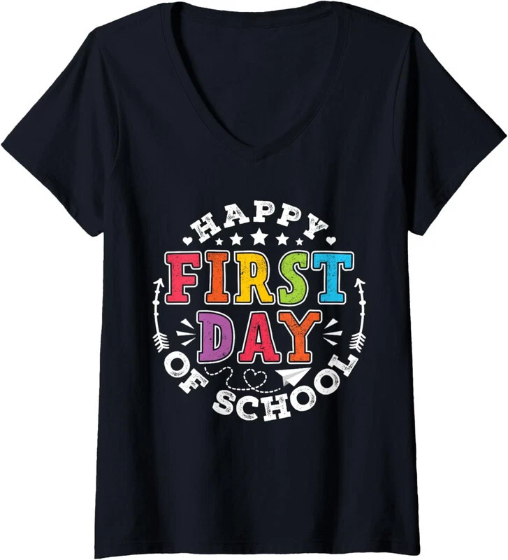 Welcome to Our eBay Shop Fast Shipping Hasslefree Returns Secure Payment Excellent Service Back To School First Day Of School Teachers Cute Product Description All of our t-shirts are brand new and made to order. They are printed in our New York facilities with love and passion. We use various printing methods to ensure you the high quality, long lasting garments you or your loved ones deserve. We carry sizes from Small to 2X-Large in Ladies' Vneck t-shirts (depending on the design). You can refer to "SPECS & SIZING" to get accurate information regarding the sizes of the garments we use. This design is also available and printed on different types of garments in our store.If you would like this graphic printed on a different type of garment than a short sleeve women's v-neck t shirt, please make sure to check our store ! If you have any questions regarding this item or any other item we have for sale, do not hesitate to contact us. We answer all messages within 1 business day. SPECS & SIZING SHIRT CARE TIPS Wash inside out with cold water with similar colors using a gentle cycle. Tumble dry low or hang-dry Avoid using bleach and do not dry clean. PAYMENT We accept payment by any of the following methods: PayPal Please pay as soon as possible after winning an auction, as that will allow us to post your item to you sooner! SHIPPING Your order will be dispatched within 2 business days of receiving payment (Monday-Friday) with a tracking number. In the very unlikely event that your item is lost or damaged during post, then WE are responsible and will issue either a full refund or replacement. RETURNS If you are not 100% satisfied with your purchase, you can return the product and get a full refund or exchange the product for another one, be it similar or not. You can return a product for up to 14 days from the date you purchased it. Any product you return must be in the same condition you received it and in the original packaging. Please keep the receipt. Feedback * Your great positive feedback will be greatly welcomed! * If you have any problem when you receive the item, please contact us first, we'll do our best to resolve the problem!:) Copyright © 2024 | All Rights Reserved