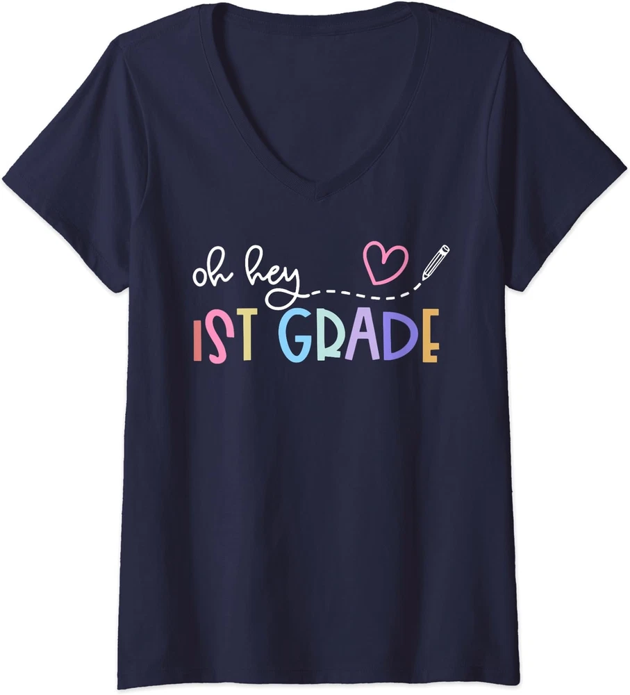 Welcome to Our eBay Shop Fast Shipping Hasslefree Returns Secure Payment Excellent Service Back To School Oh Hey 1st Grade Teachers Gift Product Description All of our t-shirts are brand new and made to order. They are printed in our New York facilities with love and passion. We use various printing methods to ensure you the high quality, long lasting garments you or your loved ones deserve. We carry sizes from Small to 2X-Large in Ladies' Vneck t-shirts (depending on the design). You can refer to "SPECS & SIZING" to get accurate information regarding the sizes of the garments we use. This design is also available and printed on different types of garments in our store.If you would like this graphic printed on a different type of garment than a short sleeve women's v-neck t shirt, please make sure to check our store ! If you have any questions regarding this item or any other item we have for sale, do not hesitate to contact us. We answer all messages within 1 business day. SPECS & SIZING SHIRT CARE TIPS Wash inside out with cold water with similar colors using a gentle cycle. Tumble dry low or hang-dry Avoid using bleach and do not dry clean. PAYMENT We accept payment by any of the following methods: PayPal Please pay as soon as possible after winning an auction, as that will allow us to post your item to you sooner! SHIPPING Your order will be dispatched within 2 business days of receiving payment (Monday-Friday) with a tracking number. In the very unlikely event that your item is lost or damaged during post, then WE are responsible and will issue either a full refund or replacement. RETURNS If you are not 100% satisfied with your purchase, you can return the product and get a full refund or exchange the product for another one, be it similar or not. You can return a product for up to 14 days from the date you purchased it. Any product you return must be in the same condition you received it and in the original packaging. Please keep the receipt. Feedback * Your great positive feedback will be greatly welcomed! * If you have any problem when you receive the item, please contact us first, we'll do our best to resolve the problem!:) Copyright © 2022 | All Rights Reserved