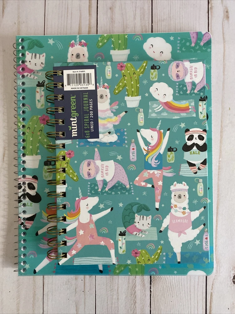 This unique set is brand new, as pictured. It is ready to ship to you from our clean, smoke free gift shop today! The spiral notebook is 8.5 “x10.5”, and has 80 sheets of wide ruled paper. The cover is plastic. The spiral journal is 6” x 8”, and has 200 pages of lined paper. It is a hardcover journal. Thank you for supporting America’s small businesses!