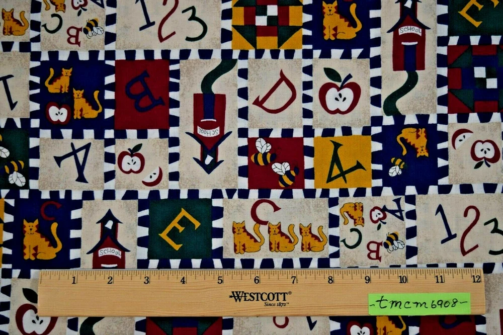 New off Bolt, Back to School ABC's 123's Cat Bee Block Print, Vintage, 100% Cotton Fabric by Springs. Quilting Quality. Sold by Fat Quarter, 18 inches by 22 inches, generous cuts for allowable shrinkage. Multiple purchases will be cut as one continuous piece unless odd numbered of FQ purchased. For example, 3 FQ's would be cut as 1/2 yard and one separate cut FQ. There are several coordinating prints to this fabric with my other listings. Perfect fabric for making masks/face coverings. From Smoke and Pet Free Studio. Will happily combine shipping with multiple purchases, kindly request invoice prior to payment. Overage of shipping expenses with multiple purchases will be refunded. Fabric ships Ground Advantage USPS Mail with tracking number within one day of confirmed payment, shipping from NH. Thanks for looking and considering!