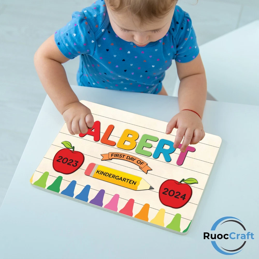 Back to School, Activities for Toddlers Personalized Name Puzzle - Unique Godchild Gifts Baby Name Puzzle for Kids Back To School Gifts ★ A Great Educational Toy, Super Cute Gift Option ★ This Personalized Wooden Name Puzzle is an ideal Gift for babies and Toddlers. ★ It is made of natural birch Plywood and Painted with water-based, certified, Kids-safe Paint. With its rounded edges and corners, it is absolutely safe for Kids. ★ The letters are raised from the wood for easy grasping. The capital letters are large enough for Kids to not swallow them. You can choose your main element(s) from the Pictures and Pick a color scheme of your choice. ★ This Puzzle is Perfect for numerous occasions, such as Christmas, Birthday, Thanksgiving, Baby Shower, and Christening (Baptism). ★ You can also add a special engraving message on the back side (optional).This Baby Puzzle helps to increase sensory and motor skills and is the Perfect Montessori-inspired toy. ★ This Personalized Name Puzzle is a great way to help your Toddlers learn their letters, recognize colors and develop their sensory and motor skills. This Wooden Puzzle is made up of separate letter Pieces, each of which can be Customized with a variety of fun and colorful elements, from Animals and Princesses to bears and more. ★ The Puzzle board is made of Plywood and water-based ink. Water-based ink is completely safe for children and environmentally friendly. ★ The engraved message on the back is FREE will make this Kids Name Puzzle a more Personalized heirloom to be treasured for a lifetime! ★ Dimensions and Pieces - The Puzzle board has a height of 3" - 9", the length depends on the number of letters and usually from 12,5" to 27") . - The Puzzle board length depends on the number of letters you choose and usually ranges from: Average Letters, Shapes and Numbers Height : 6-8 cm (2.36 - 3.14 inches) ★ Shipping Be sure that your puzzle will come to you very well wrapped and packaged. - Order processing time: 3-5 business days (maximum) - Shipping time: USA: 8 - 10 business days (maximum) UK: 10 - 12 business days (maximum) AU: 10 - 12 business days (maximum) ★ Benefits Of This Puzzle - Supports kid’s motor skills - Teaches balance and coordination - Supports spatial intelligence development - Increases ability to focus - Self-confidence: Increases self-confidence - Problem solving ability: Gains practicality in producing solutions - Eliminates attention deficit - Improves visual memory - Happiness: The child playing with the puzzle enjoys it and becomes happy - Gets familiar with the basics of daily usage shapes - Recognizes name and developing spell - Discovers potentials and world - Increases kid’s curiosity - Much more better instead of focusing to a digital screen ★ High Safety – Greenguard Certificate When producing our high quality puzzles, safety is a high priority for us, as well as design and instruction. For this reason, puzzle corners are oval, not pointed. The pieces on the puzzle do not have sharp or any surface that will harm your child. We're also the only store on Etsy that uses water-based, non-toxic, Greenguard-certified paints. ★ Guarantee - Unless there is a situation caused by you, such as typing the delivery address incorrectly, in all other conditions, all errors and damages are completely under our %100 guarantee. One of the most common problems with orders is wrongly written addresses. Please check carefully when writing your address. - We pack the puzzles very well to avoid any damage to the product during the shipping phase. However, If there is damage in the shipping process or an mistake for any reason, we will definitely send a new puzzle as fast as possible without extra charge. ★ Safe Usage Instructions and Fragrance - Try not to leave children under 0-36 months alone with puzzles. Thin and long items such as the letter "I" (if you have them in your puzzle) can be dangerous for children. They may try to swallow. - Our puzzles may have a wood burning smell when they first reach you. This scent usually lasts up to 1 week. It does not have any harmful or allergenic properties. - When you receive your puzzle, it is recommended to gently wipe the side black parts of the board and the side black parts of the pieces with a very slightly damp cloth or squeezing a little cologne (without wetting the cloth too much). Please do not wipe the upper parts (painted parts) of the parts. 👉 NOTE: This Wooden Name Puzzle is made as safe as it can be 💯. However we recommend adult suơervise your Baby during play time!