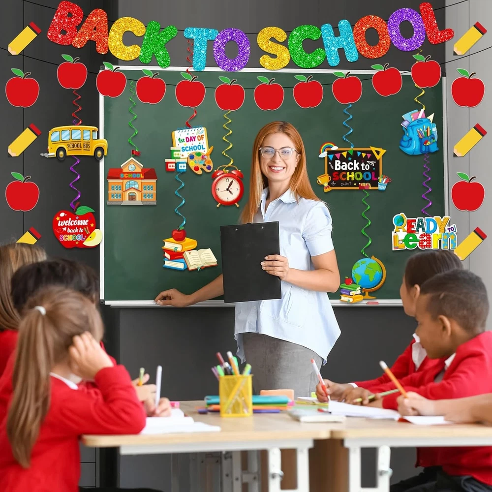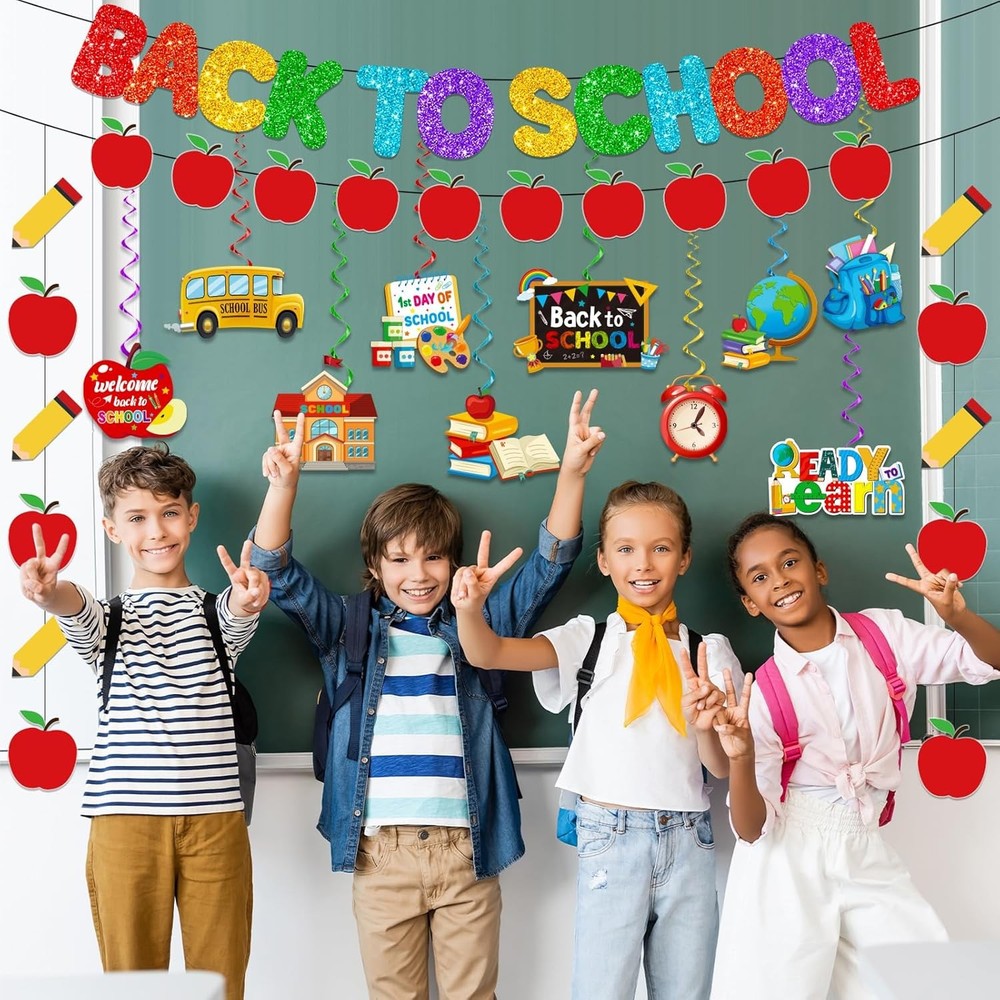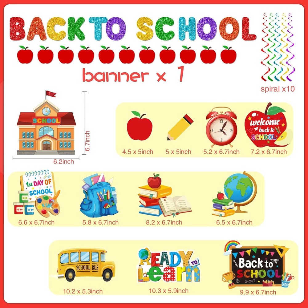 Free eBay listing template designed by dewiso.com Back to School Decorations Banner,Back to School Banner and Apple Pencil Garland School Hanging Swirls, First Day of School Decorations for Classroom Office Home FREE AND FAST SHIPPING! About this item BACK TO SCHOOL DECORATIONS:Our back to school party decorations with 1pc back to school banner,1pc pencil apple garland ,10pcs welcome back school decorations hanging decorations. Let's use colorful and attractive school decorations to make the event more special and create a happy and unforgettable return to school memory for students SCHOOL ELEMENT DESIGN: Our first day of school decor features various school elements such as school buses, books, alarms, backpacks, globes, drawing boards, pencils, etc. Also printed with words such as "WELCOME BACK TO SCHOOL", "READY TO LEARN", "1st DAY OF SCHOOL", etc. Cute designs and colorful colors will immediately attract students attention QUALITY MATERIAL BACK TO SCHOOL BANNER:Back to school garland is made of high-quality cards, thick enough, with high-definition double-sided printing. The back to school hanging decorations spiral is made of shiny and durable PVC, which is not easy to bend or break. These welcome back decorations school can be applied multiple times, with bright colors and reliable quality that will allow you to enjoy the process of classroom decoration EASY TO ASSEMBLE:These cute back to school banners can be assembled in seconds based on pictures and hung in your favorite display area, easily decorating your party and saving time and energy FIRST DAY OF SCHOOL DECORATION: These back to school banner decorations are perfect for back to school party decor, first day of school party, back to school decorations for office, back to school themed party, back to school classroom decorations, 1st day of school decorations and more. You can hang the first day of school banner in classrooms, bulletin boards, windows, walls, school hallway decorations ,teacher offices, or use it as a great photo background Product We offer a 30-Day Return Policy on items which you are not completely satisfied with. You have the option for a full-refund or an exchange of the item. No returns are available on items shipped outside of the US . Shipping We offer Free Shipping to the US and ship within 2 business days of payment, usually sooner. We use UPS express shipping. That's why your products are usually delivered within 3 days . Contact We try our very best to make sure every customer is completely satisfied. If there's a problem , message us! We're happy to help. 24/7 live chat available.