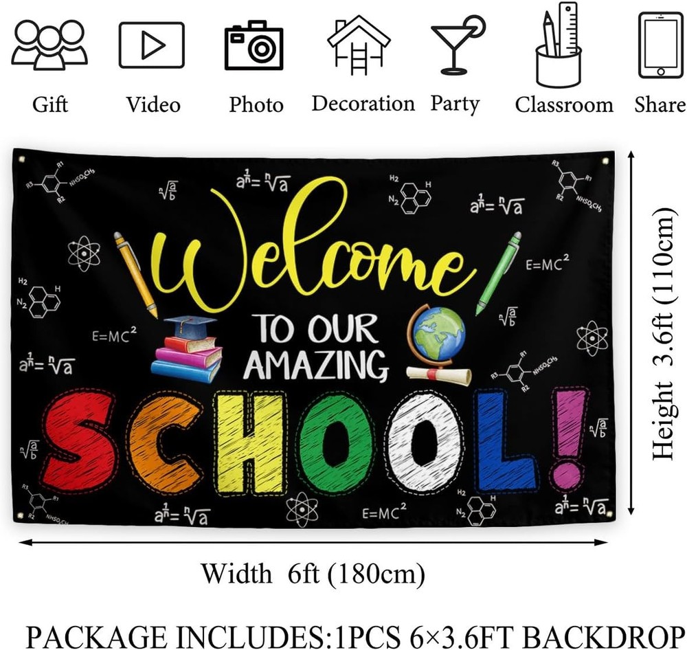 Free eBay listing template designed by dewiso.com Back to School Decorations - First Day of School Backdrop & Welcome Banner FREE AND FAST SHIPPING! About this item [Material]:This backdrop is made of high-quality material,100% polyester fabric, which is not easy to wrinkle or fade,and can be reused. [Size]:Our backdrop size is approximately 71 × 43 inches(180cm×110cm), large enough to attract people's attention. [Package listing]:Only 1pcs backdrop is included,Backdrop Stand or Clips are Not included. [Easy to hang]:Our background fabric can be hung anywhere you want. There are 4 metal grommets in each corner for easy hanging. Our background fabric is light enough to be hung with tacks, tape, or jute rope, making it perfect for indoor or outdoor use. (Note: Tools such as tacks, tape, or ropes are not included.) [Occasion]:Used for photography, photography, studio, home decoration, wallpaper, wall background scenes or decorations. Also suitable for various holiday parties and gatherings, adding a festive atmosphere. Product We offer a 30-Day Return Policy on items which you are not completely satisfied with. You have the option for a full-refund or an exchange of the item. No returns are available on items shipped outside of the US . Shipping We offer Free Shipping to the US and ship within 2 business days of payment, usually sooner. We use UPS express shipping. That's why your products are usually delivered within 3 days . Contact We try our very best to make sure every customer is completely satisfied. If there's a problem , message us! We're happy to help. 24/7 live chat available.