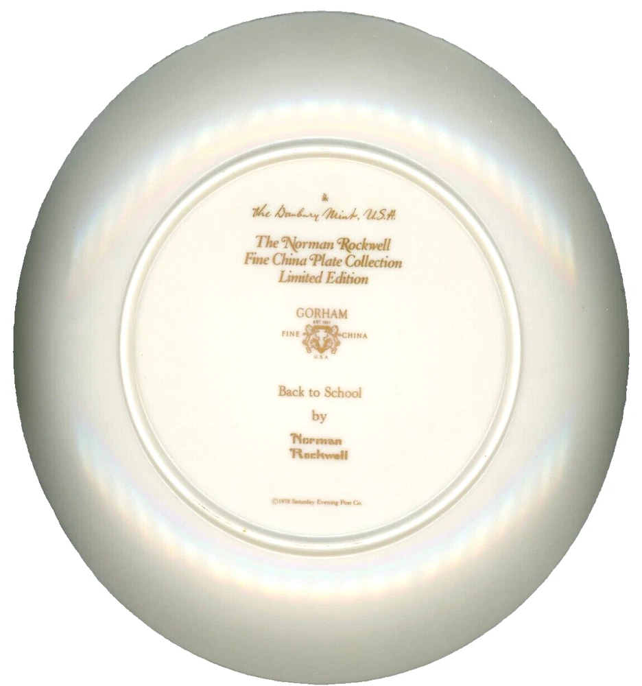 "Back to School," by Norman Rockwell, Danbury Mint Plate, 1978, from Gorham Fine China Pre-owned collectible plate in Excellent Condition 8.25" round