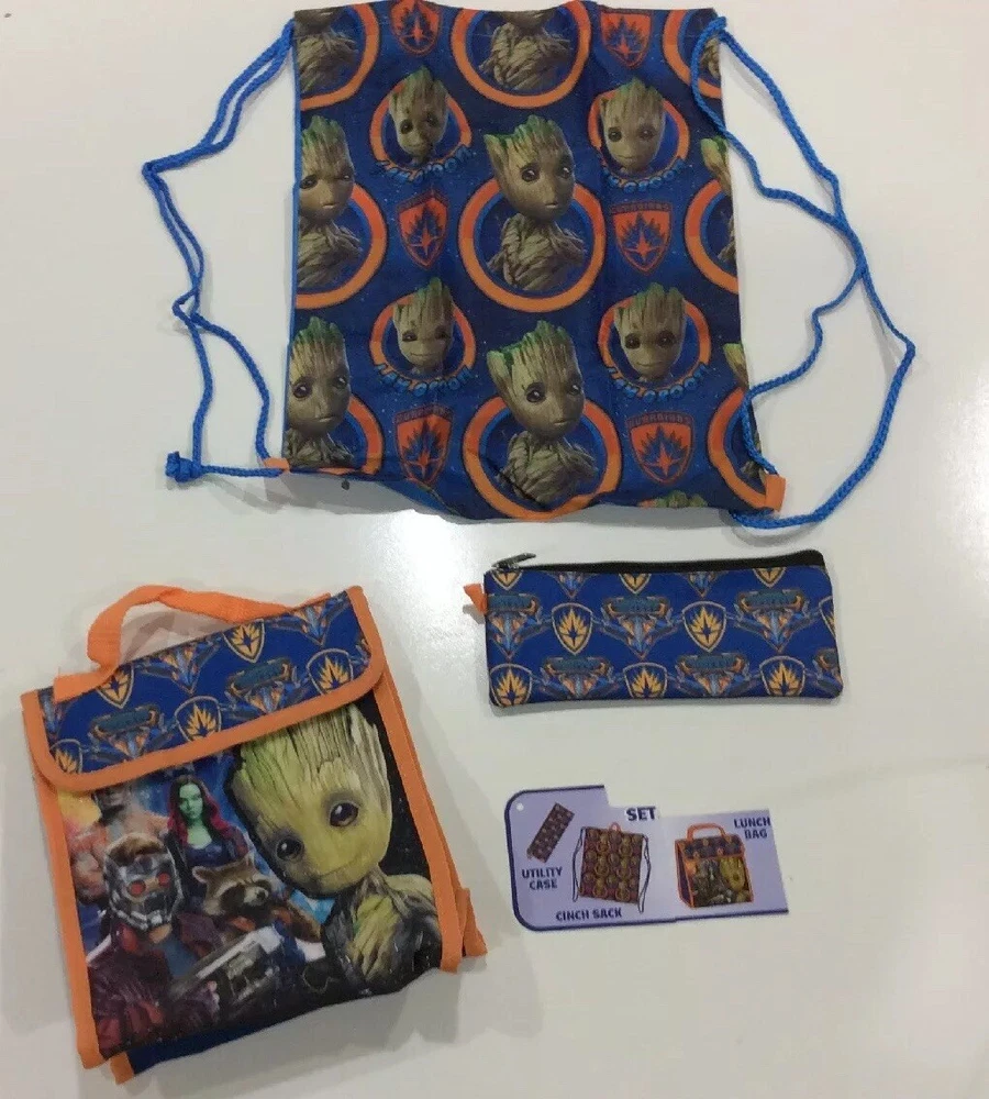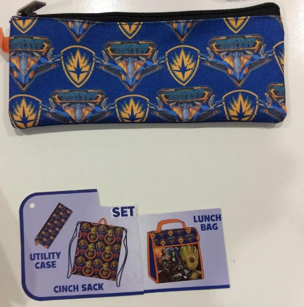 Back to School SET of 3 items: Lunch Bag Cinch Sack Pencil case Marvel Guardians Of The Galaxy NEW Shipped with USPS First class