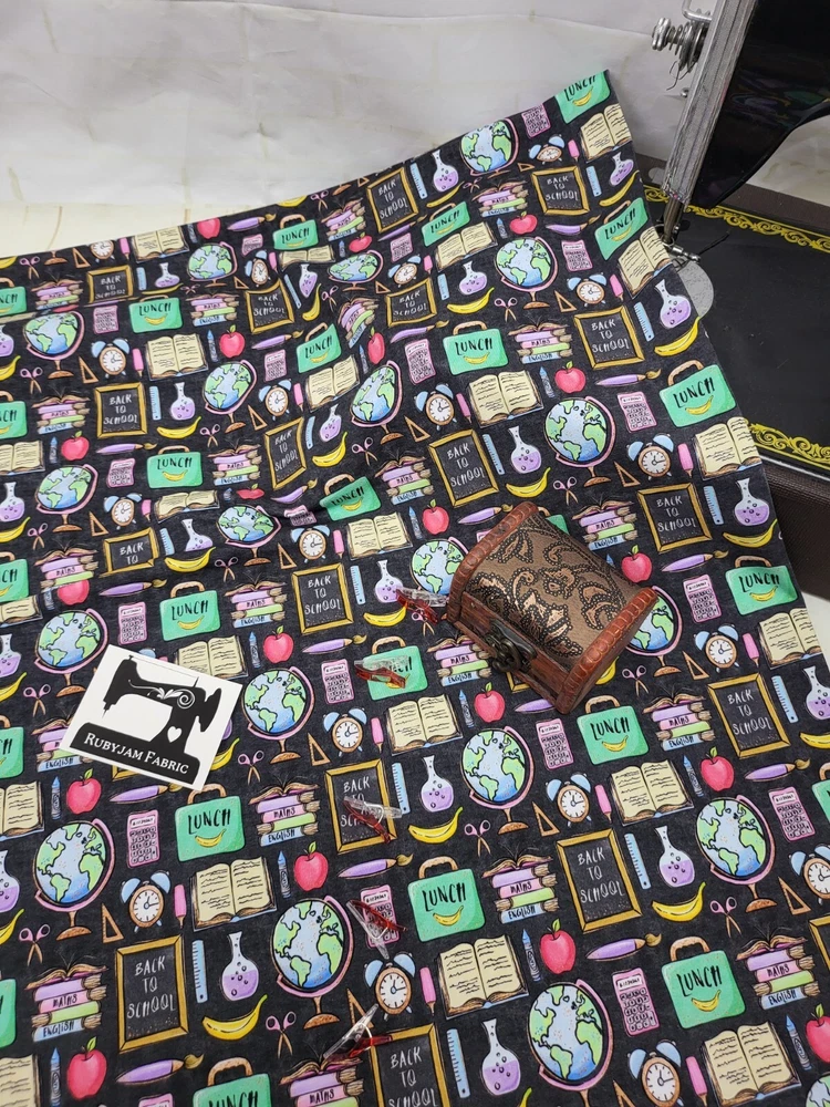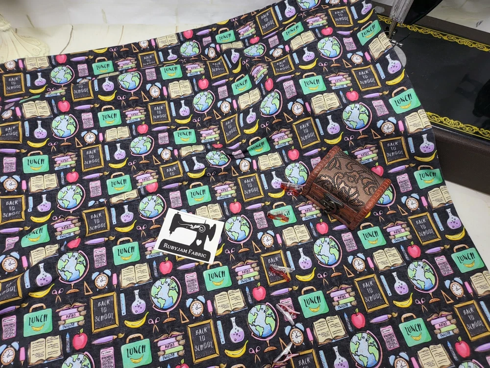 Back to School, School Fabric, cotton lycra jersey knit fabric 150cm wide