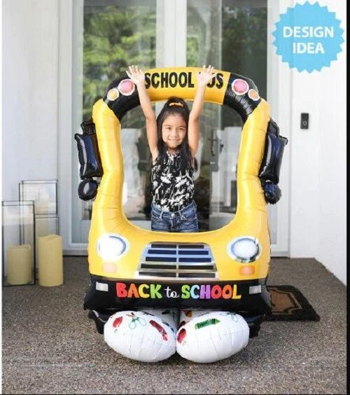 AirLoonz are the perfect balloon decoration to highlight your school party! This Selfie School Bus Airloonz balloon stands 56" high when fully inflated and is designed to be inflated with air only. No helium required! AirLoonz balloons include a color matching set of foil mylar balloons that creates a sturdy base for the main balloon to rest on and stand upright. Each AirLoonz has 2 inflation points. One in the top part of the balloon and one in the base. Airloonz can be inflated with a balloon air inflator or a hand pump. Easy to place elastic strap included. Use a balloon weight or any household item, like a can of soup, in the base to stabilize. Balloon includes self-sealing valves, preventing the gas from escaping after it's inflated. Balloon arrives un-inflated. CHOKING HAZARD – Children under 8 yrs. can choke or suffocate on uninflated or broken balloons. Adult supervision required. Keep uninflated balloons from children. Discard broken balloons at once.
