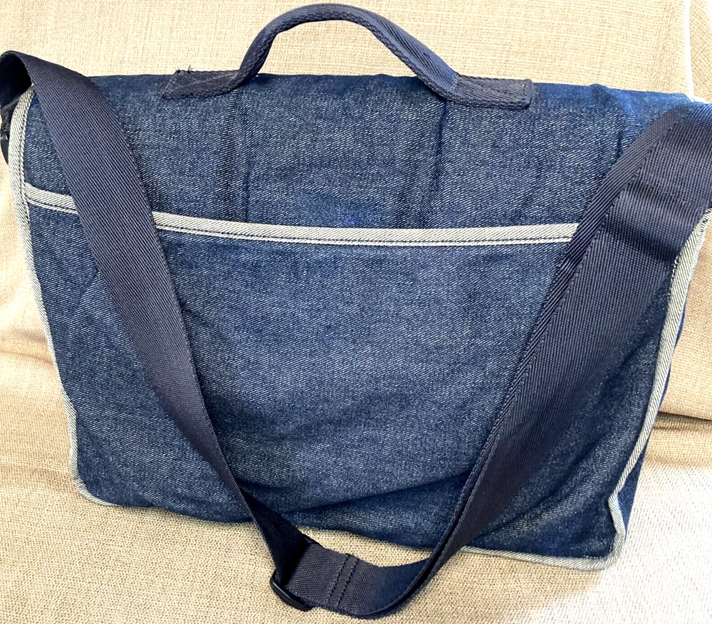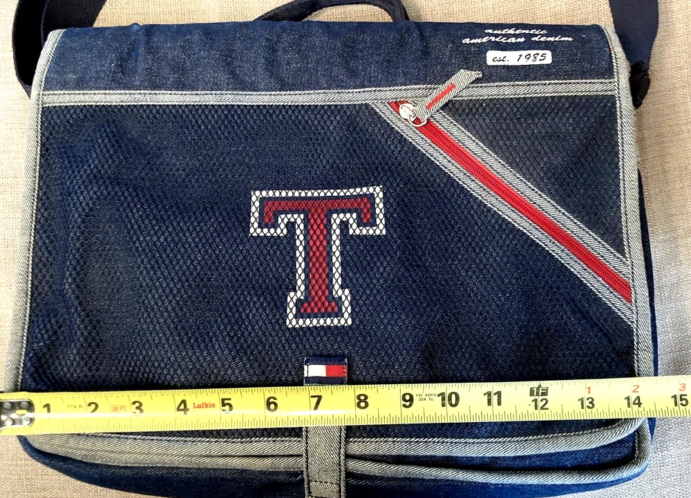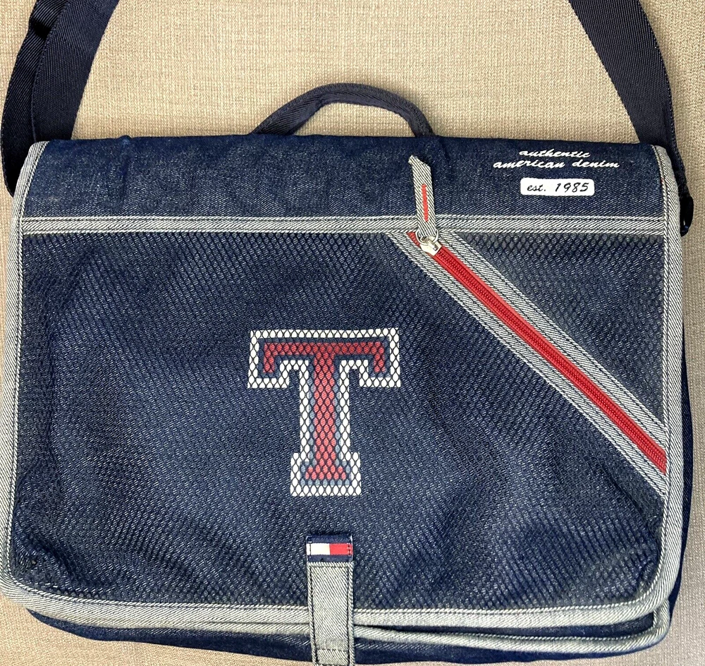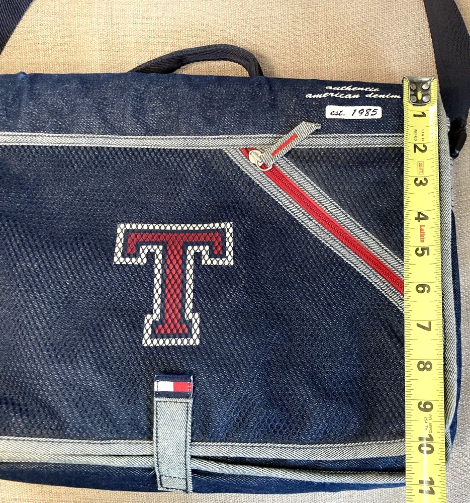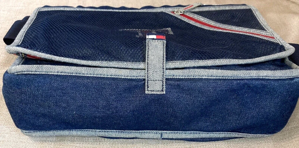 Back to School Tommy Hilfiger Blue Denim Book bag T Logo Tote Organizer