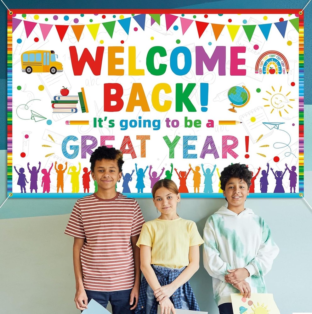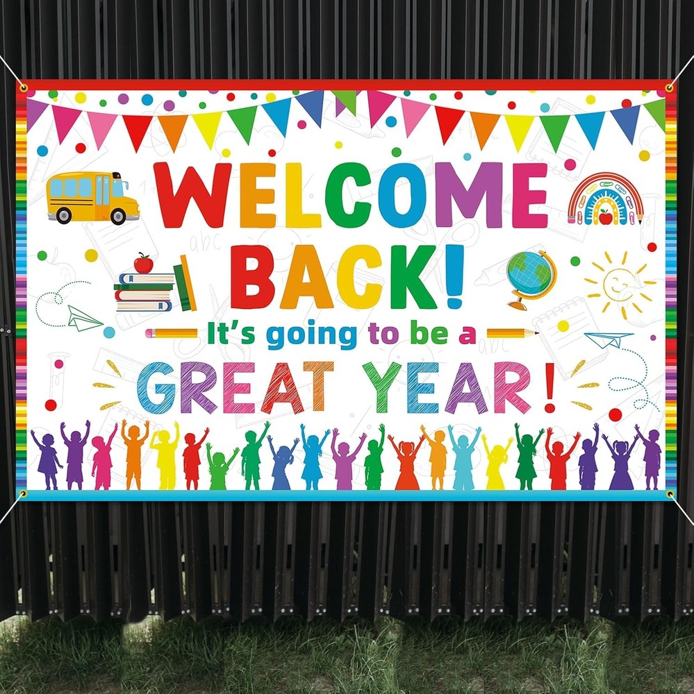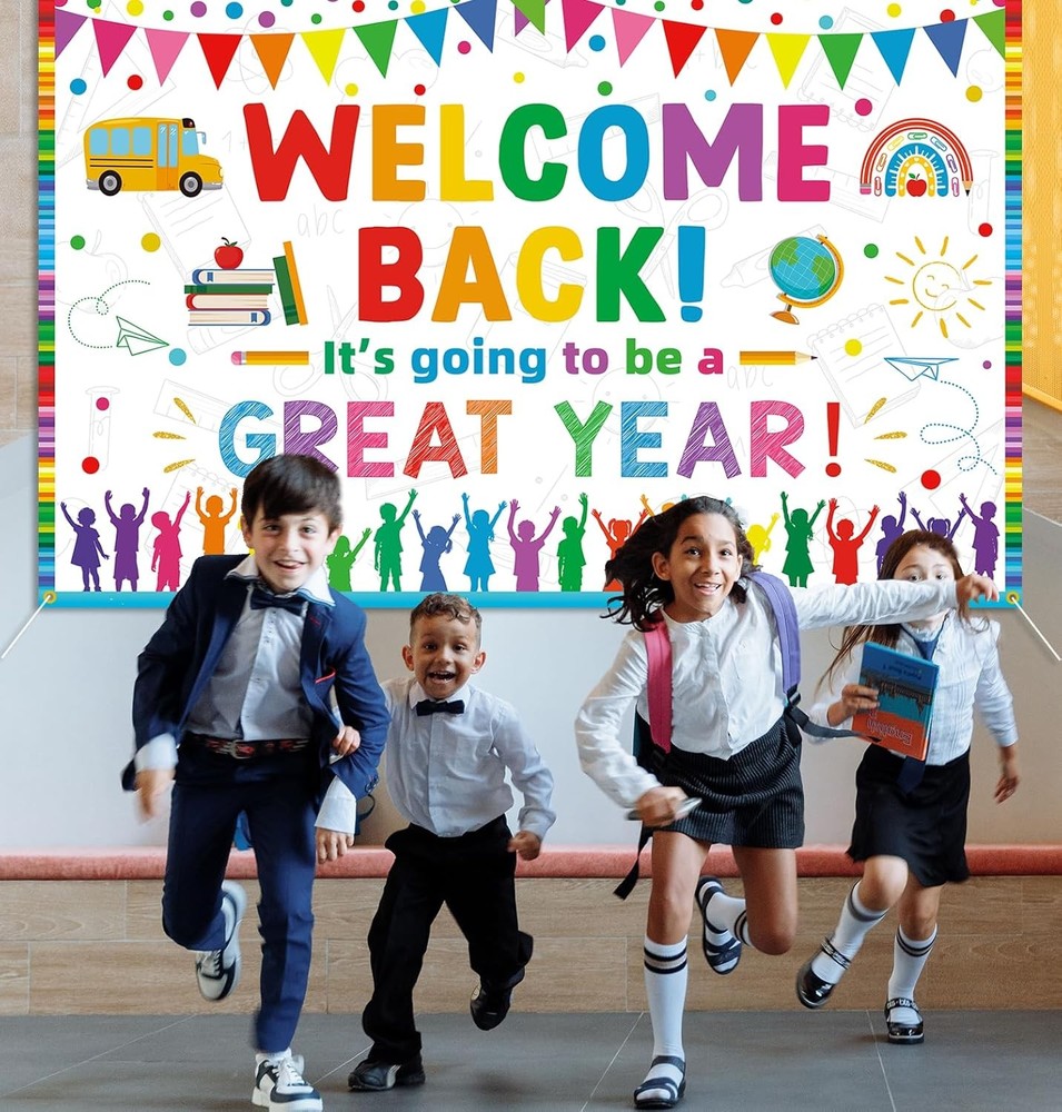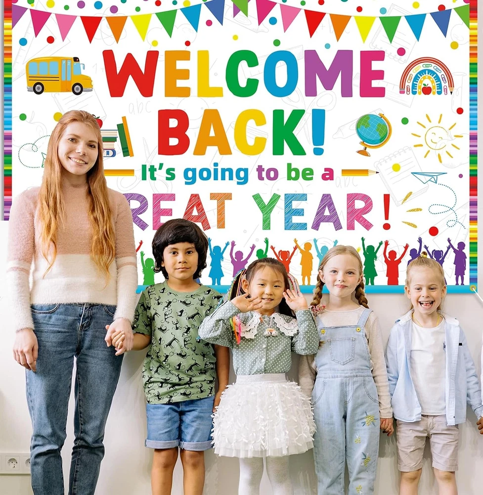 72x44 Inch Welcome Back to School Banner – First Day Decorations for Classroom or Party