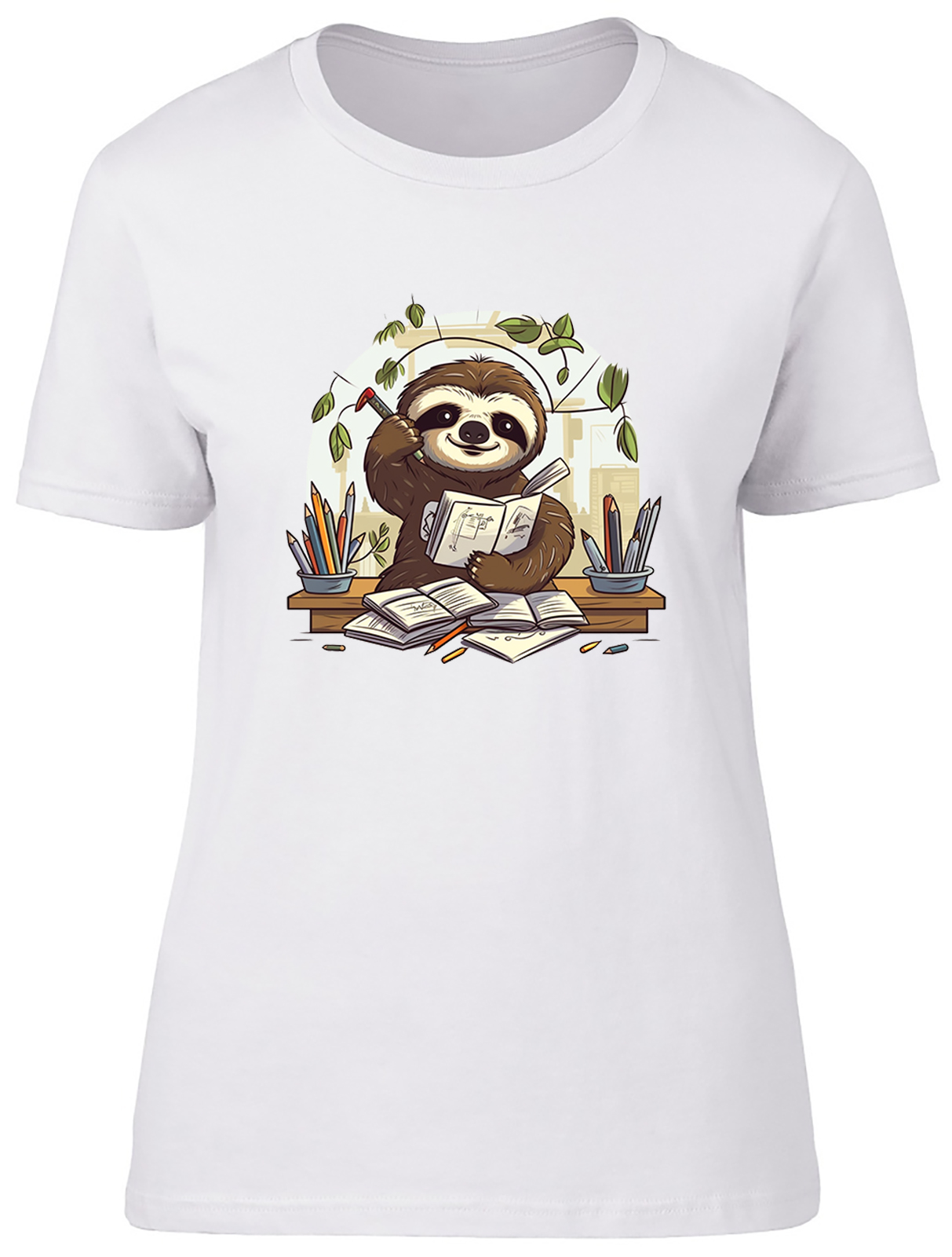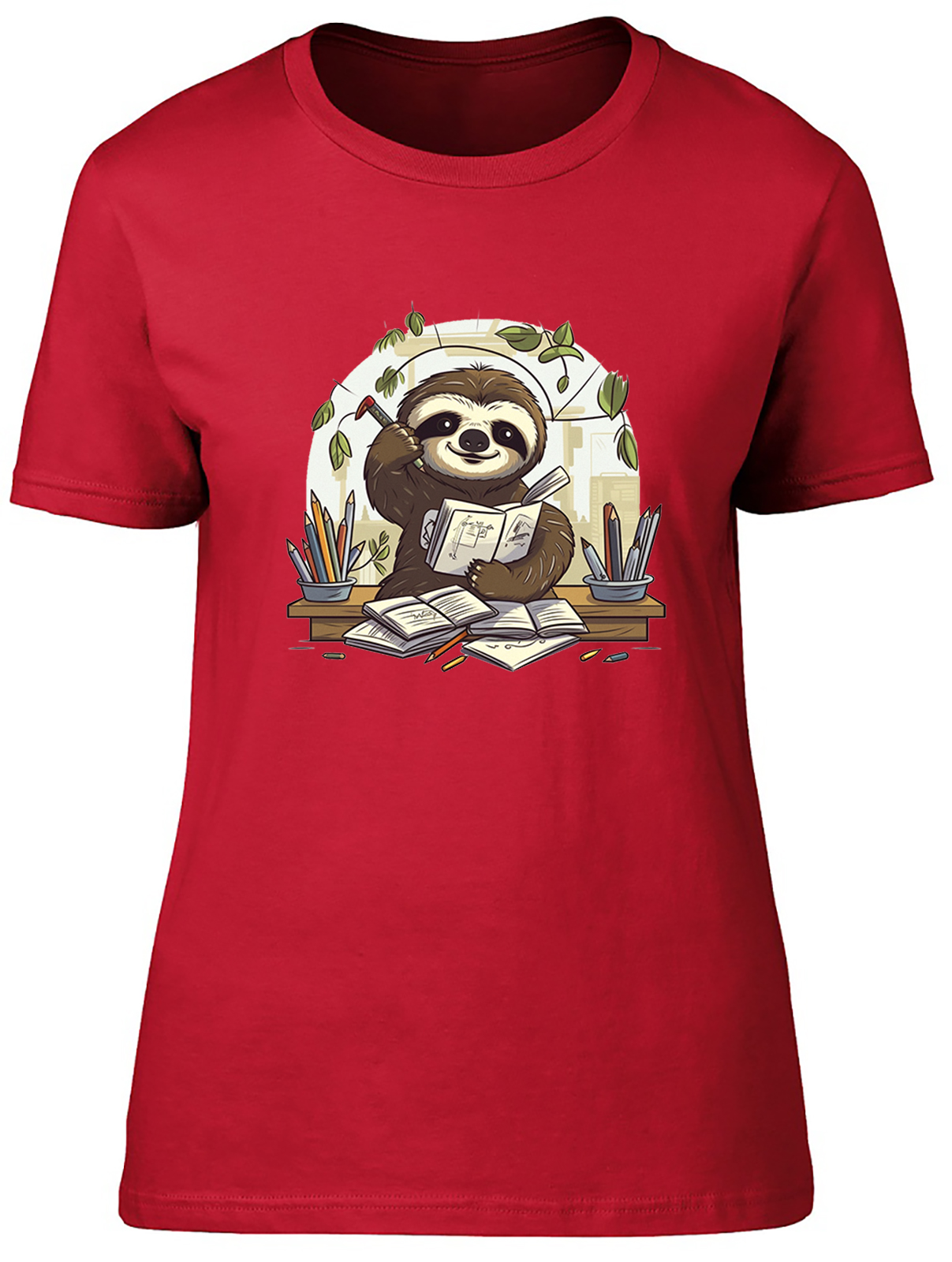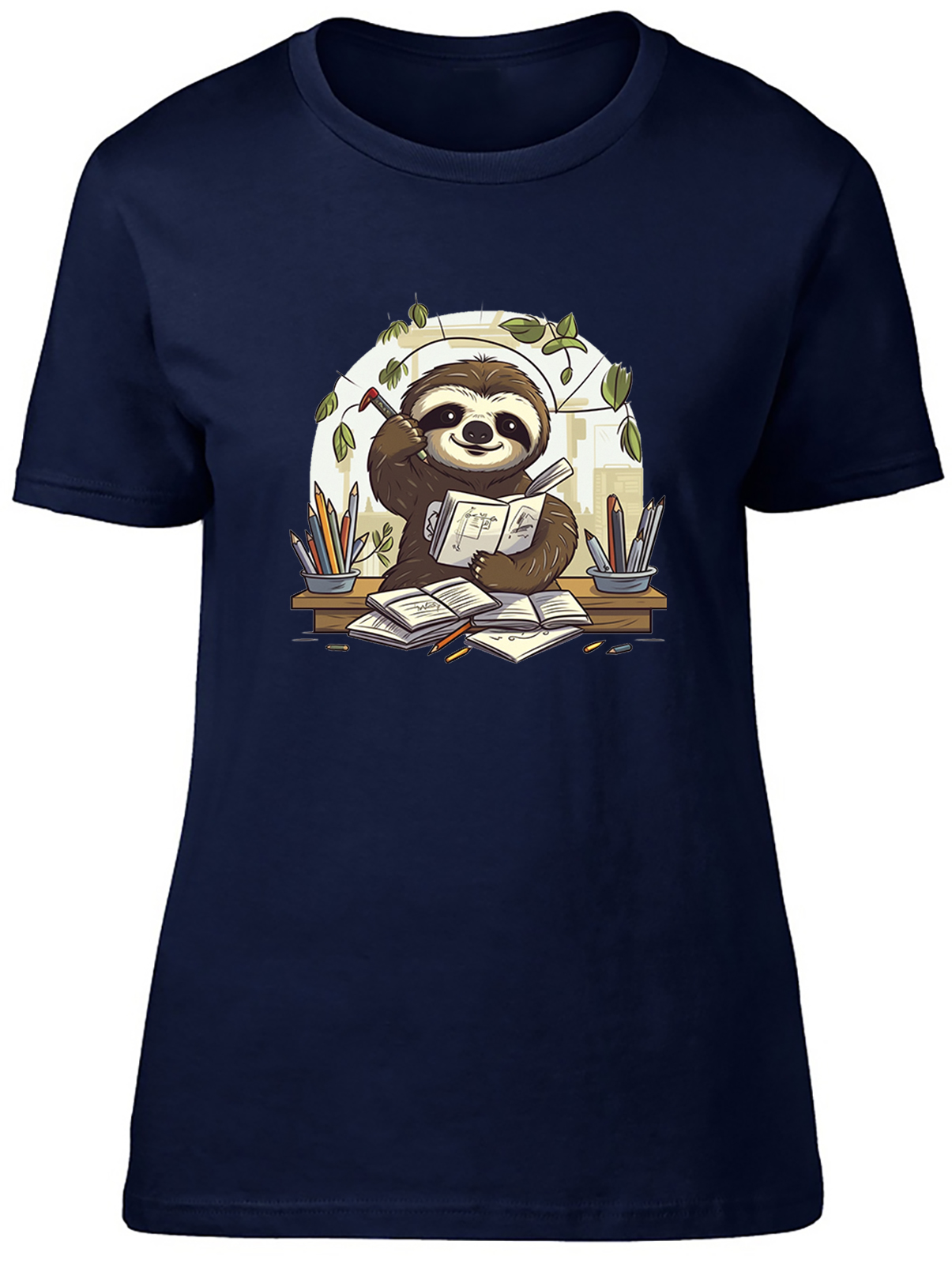 Back to School Womens T-Shirt Sloth Books Pens Stationary Ladies Gift Tee