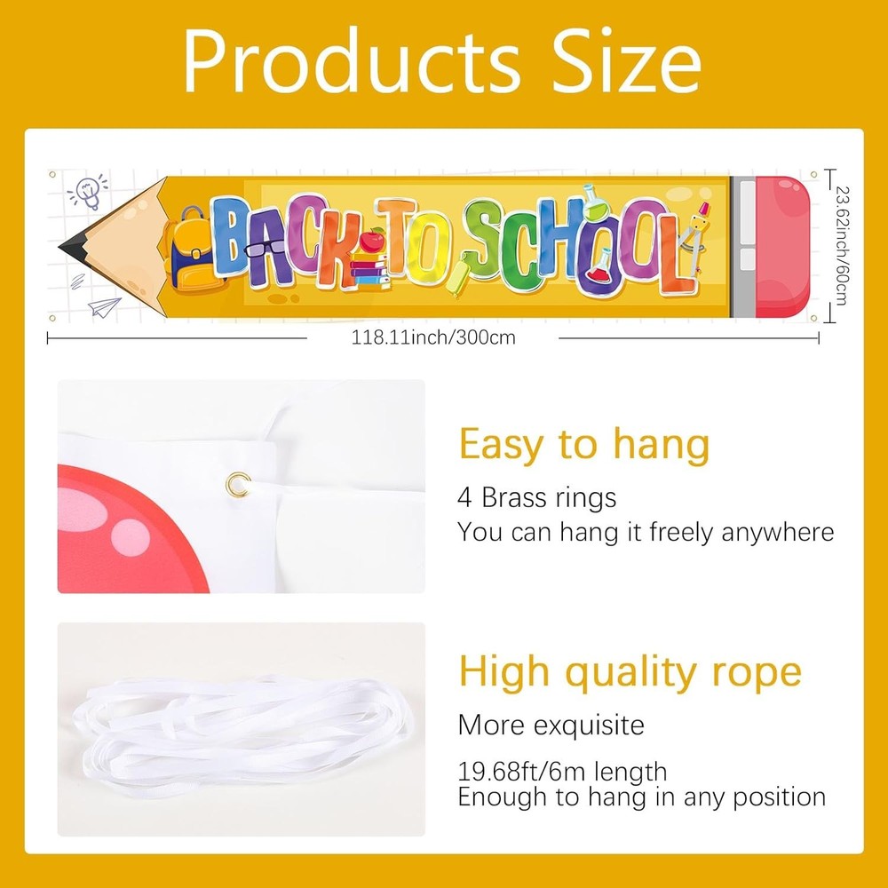 Occasion: Back to school decorations, First day of school decorations Type: Does not apply gtin13: Does not apply Special Feature: Tear Resistant Recommended Uses For Product: Party Brand: OTTPOOM Material: Polyester UPC: Does not apply Product Dimensions: 118.11"L x 23.62"W Fabric Type: Polyester Color: Yellow Theme: Back to school decorations, First day of school decorations Country/Region of Manufacture: United States Specific Uses For Product: Indoor, Outdoor